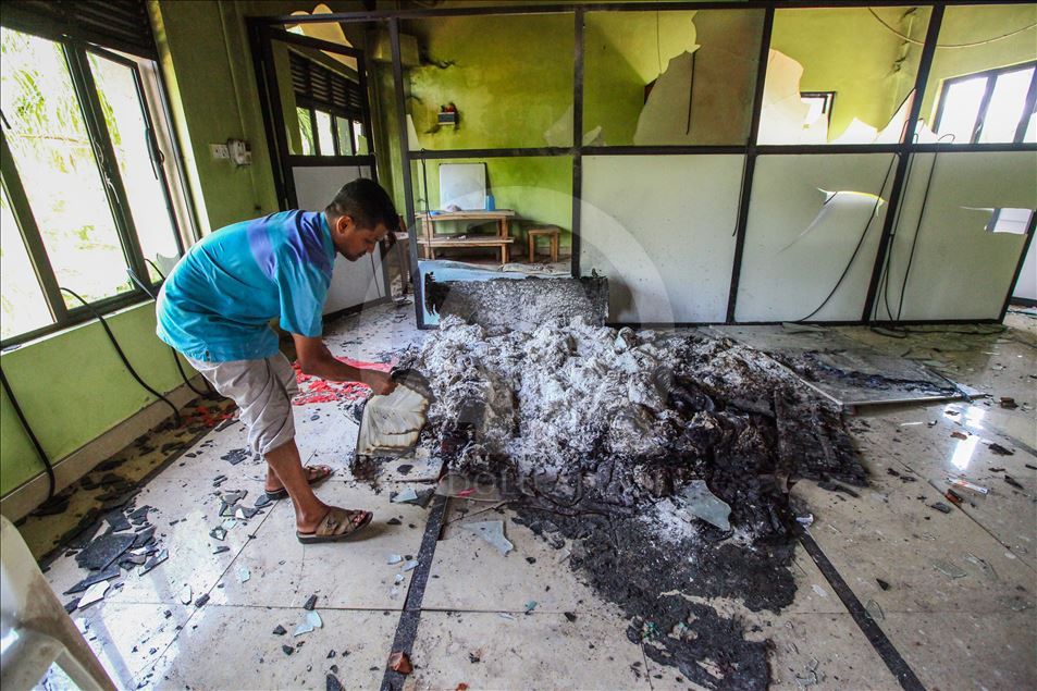 Sri Lanka'nın başkenti Colombo'nun kuzeyindeki Kurunegala Bölgesi'nde bulunan Hettipola kasabasında bir camiye saldırı düzenlendi. Camide büyük ölçüde hasar meydana geldi. ( Chamila Karunarathne - Anadolu Ajansı )Chamila Karunarathne