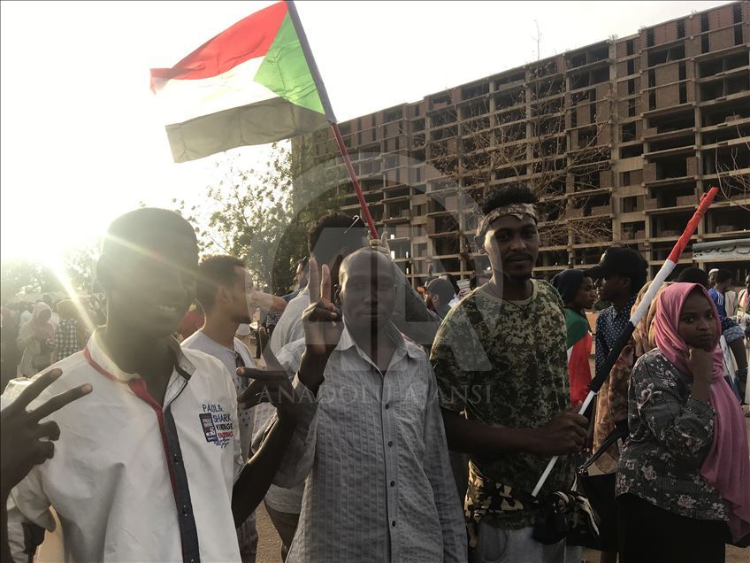 Sudan'ın başkenti Hartum'daki Ordu Komutanlığı binası önünde toplanan Sudanlılar, yönetimin sivil bir hükümete devredilmesi talebiyle gösteri düzenledi. ( Ömer Erdem - Anadolu Ajansı )Ömer Erdem