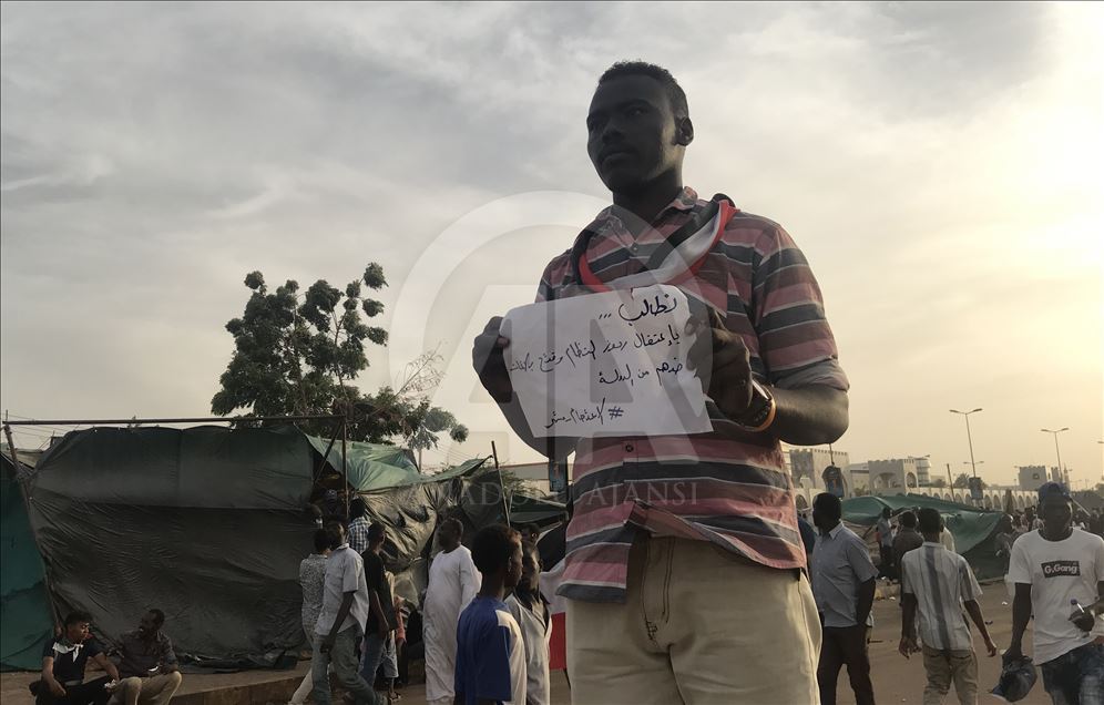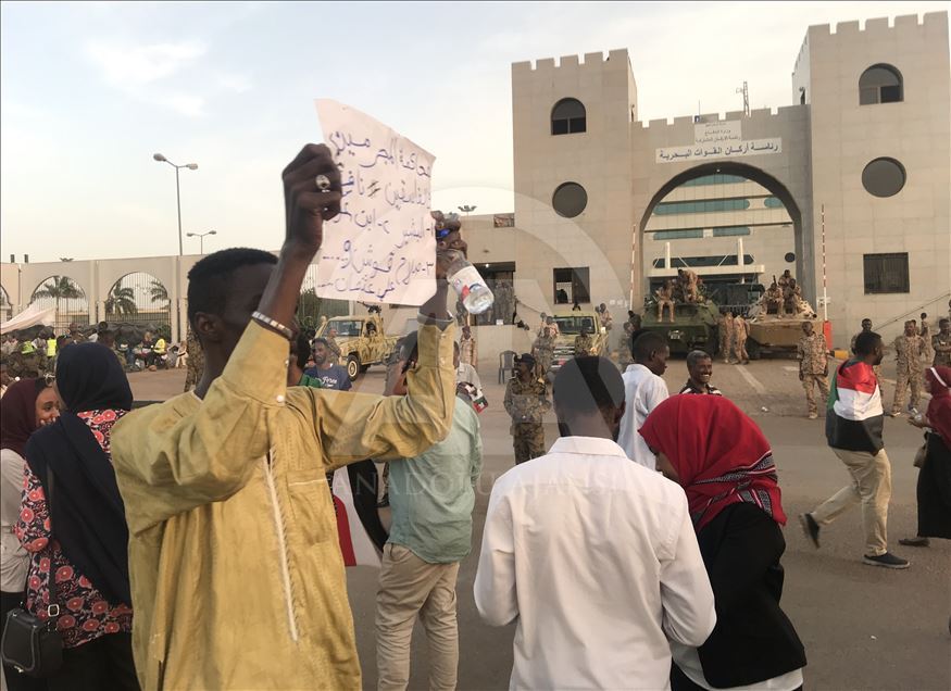 Sudan'ın başkenti Hartum'daki Ordu Komutanlığı binası önünde toplanan Sudanlılar, yönetimin sivil bir hükümete devredilmesi talebiyle gösteri düzenledi. Güvenlik güçleri, Ordu Komutanlığı binası çevresinde önlem aldı.
