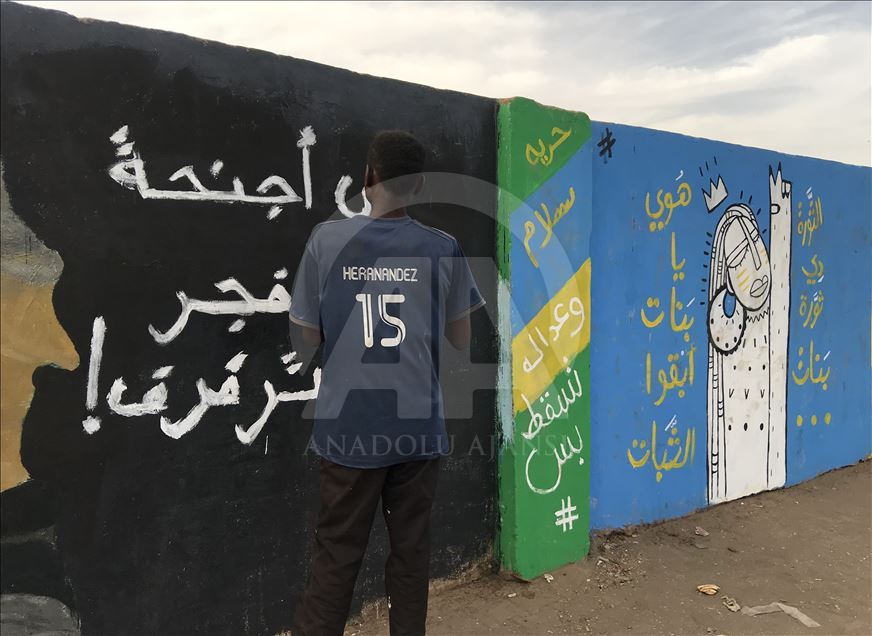Sudan'ın başkenti Hartum'daki Ordu Komutanlığı binası önünde toplanan Sudanlılar, yönetimin sivil bir hükümete devredilmesi talebiyle gösteri düzenledi. Bazı vatandaşlar, duvarda grafiti çizdi. ( Ömer Erdem - Anadolu Ajansı )Ömer Erdem