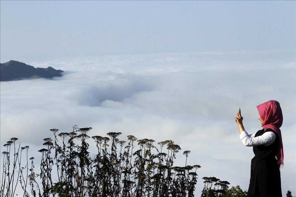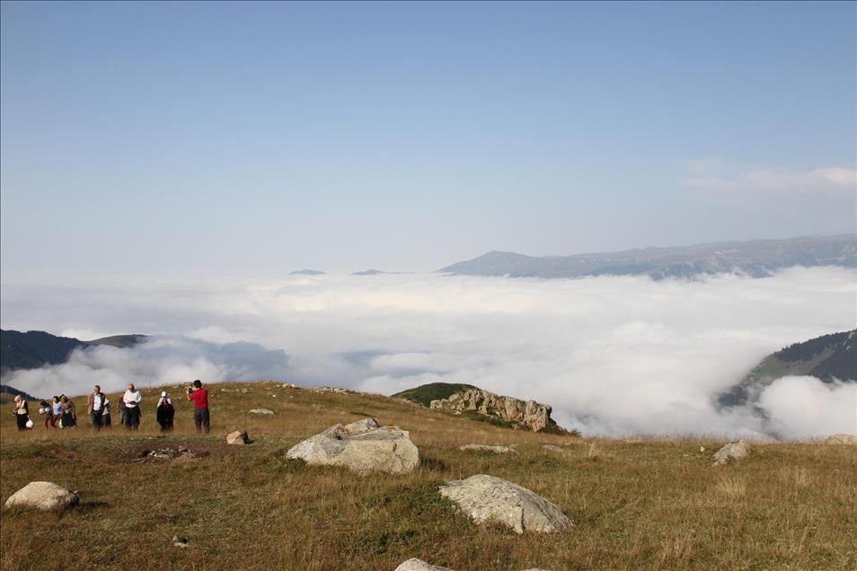 Trabzon'un Çaykara ilçesindeki Sultan Murat Yaylası, vadilerde oluşan ve deniz görüntüsü veren bulutlar yüzünden ziyaretçilerini büyülüyor. Yaylada, piknik yaparak bulutları izleyen ziyaretçiler, piknik yapıp fotoğraf çekme imkanı da buluyor. (Salih YILDIRIM - Anadolu Ajansı)Salih YILDIRIM