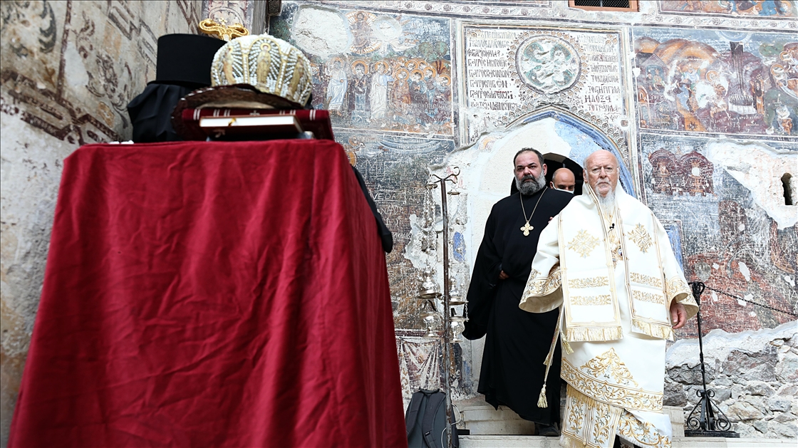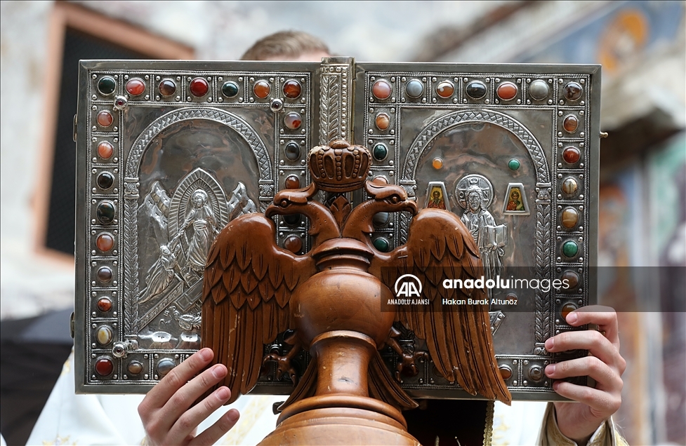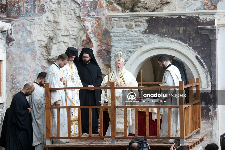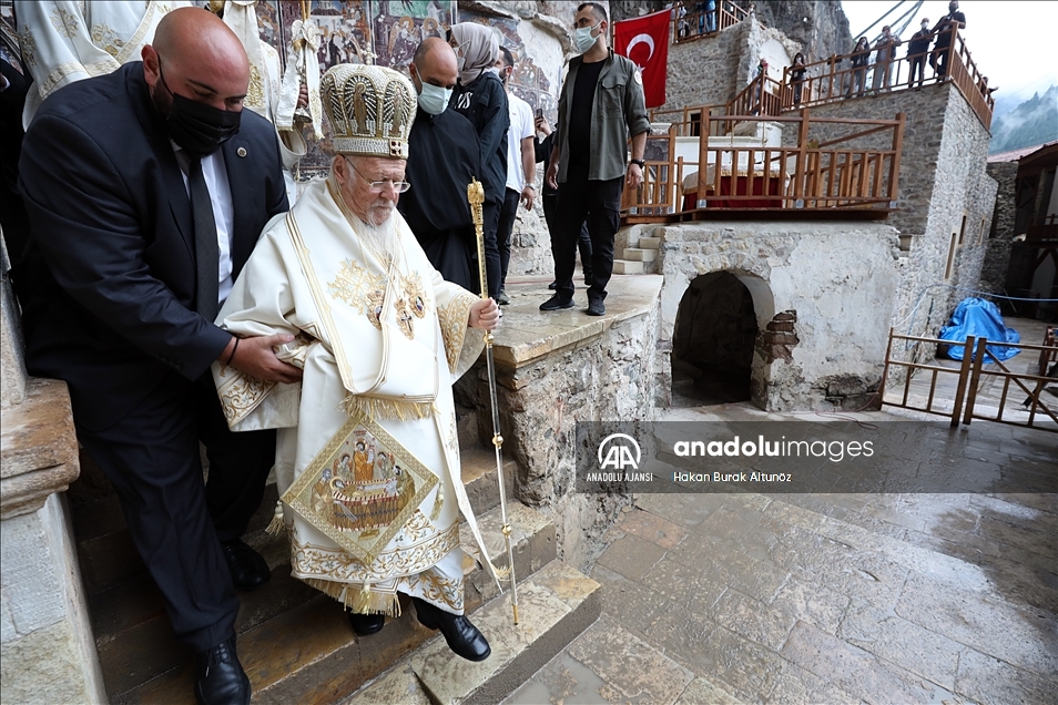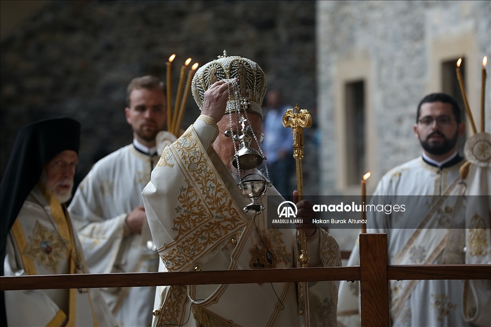 Trabzon'un Maçka ilçesinde, Karadağ'ın Altındere Vadisi'ne bakan eteğindeki Sümela Manastırı'nda 8'inci ayin tamamlandı. Türkiye'nin önemli inanç merkezlerinden Sümela Manastırı'nda, Hristiyan aleminde "Meryem Ana'nın göğe yükseliş günü" olarak kabul edilen ve Hristiyan Ortodokslarca yapılan ayin, Fener Rum Patriği Bartholomeos (fotoğrafta) yönetiminde gerçekleştirildi. ( Hakan Burak Altunöz - Anadolu Ajansı )Hakan Burak Altunöz