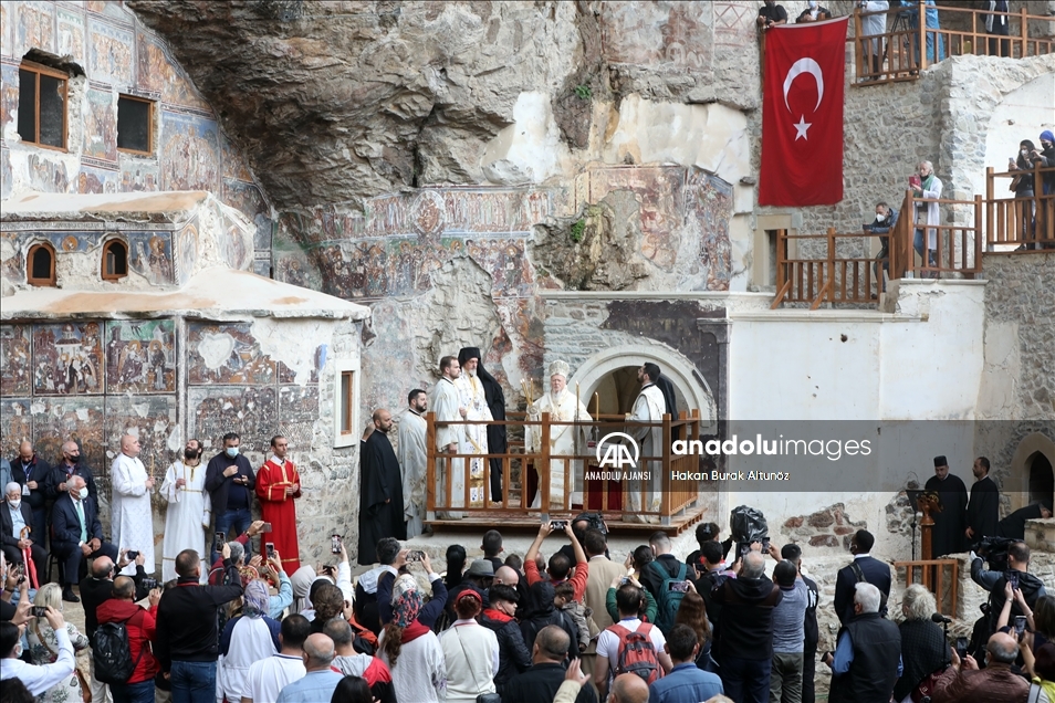 Trabzon'un Maçka ilçesinde, Karadağ'ın Altındere Vadisi'ne bakan eteğindeki Sümela Manastırı'nda 8'inci ayin tamamlandı. Türkiye'nin önemli inanç merkezlerinden Sümela Manastırı'nda, Hristiyan aleminde "Meryem Ana'nın göğe yükseliş günü" olarak kabul edilen ve Hristiyan Ortodokslarca yapılan ayin, Fener Rum Patriği Bartholomeos (sağ 2) yönetiminde gerçekleştirildi. ( Hakan Burak Altunöz - Anadolu Ajansı )Hakan Burak Altunöz