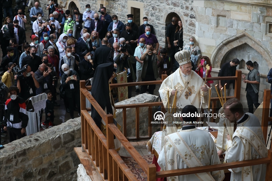 Trabzon'un Maçka ilçesinde, Karadağ'ın Altındere Vadisi'ne bakan eteğindeki Sümela Manastırı'nda 8'inci ayin tamamlandı. Türkiye'nin önemli inanç merkezlerinden Sümela Manastırı'nda, Hristiyan aleminde "Meryem Ana'nın göğe yükseliş günü" olarak kabul edilen ve Hristiyan Ortodokslarca yapılan ayin, Fener Rum Patriği Bartholomeos (solda) yönetiminde gerçekleştirildi. Ayine, Trabzonspor'un Yunan futbolcusu Anastasios Bakasetas da (sağda) katıldı. ( Hakan Burak Altunöz - Anadolu Ajansı )Hakan Burak Altunöz