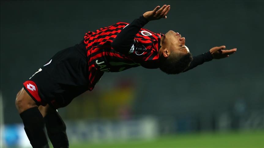 Spor Toto Süper Lig'de Gençlerbirliği ile Göztepe, Ankara 19 Mayıs Stadı'nda karşılaştı. Bir pozisyonda Gençlerbirliği'nden Jailton attığı gol sonrası takım arkadaşları ile birlikte sevinç yaşadı. ( Evrim Aydın - Anadolu Ajansı )Evrim Aydın