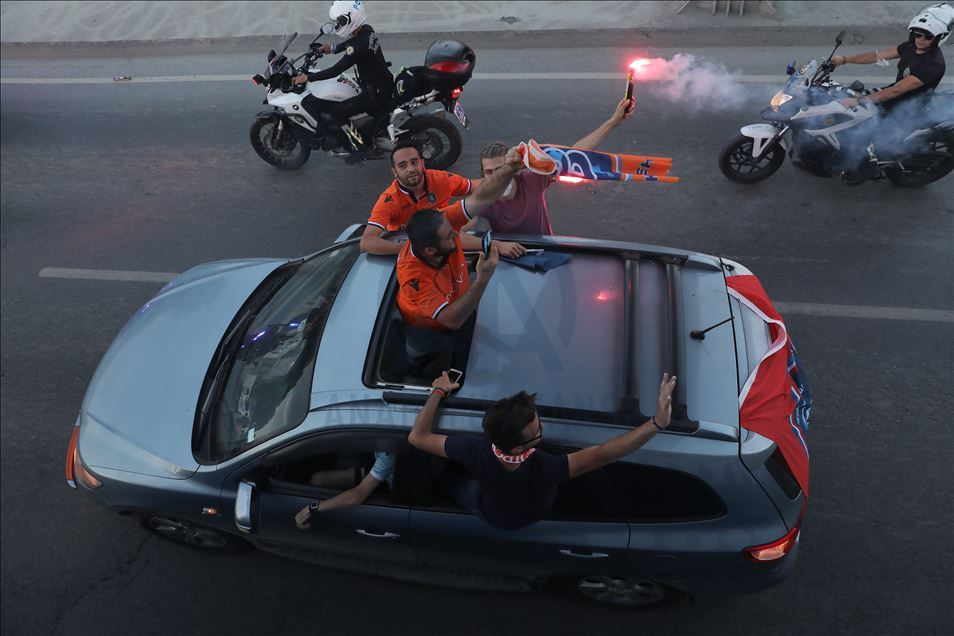 Süper Lig şampiyonu Medipol Başakşehir, Başakşehir Fatih Terim Stadı'nda düzenlenecek kupa törenine üstü açık otobüsle gitti. Bazı taraftarlar güzergahta Medipol Başakşehirli futbolculara arabayla eşlik etti. ( İsa Terli - Anadolu Ajansı )İsa Terli