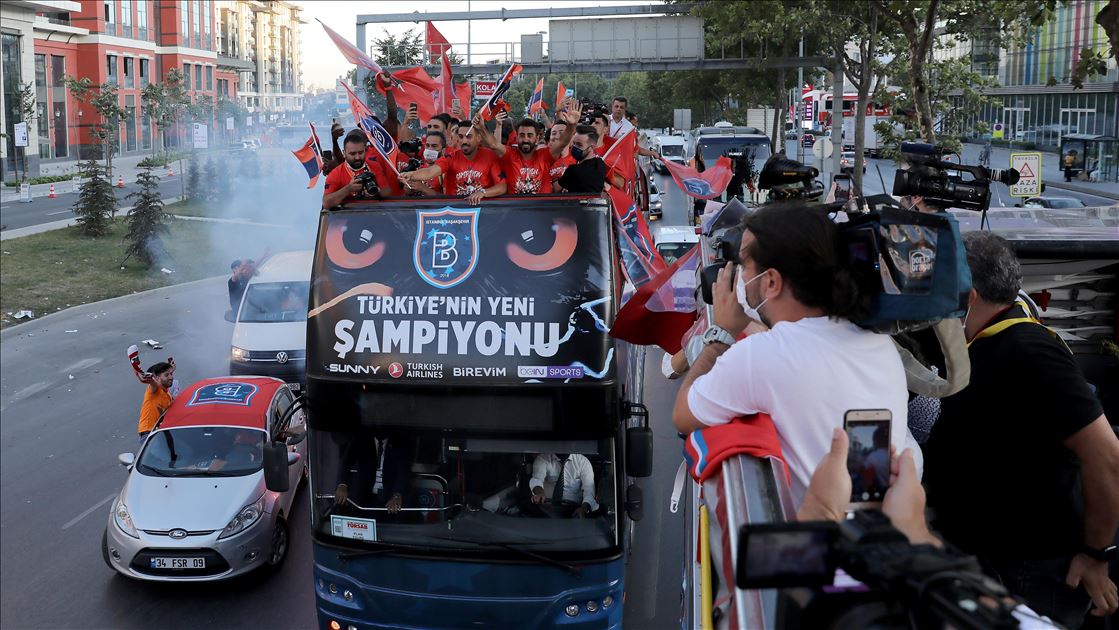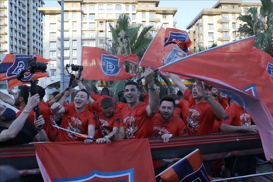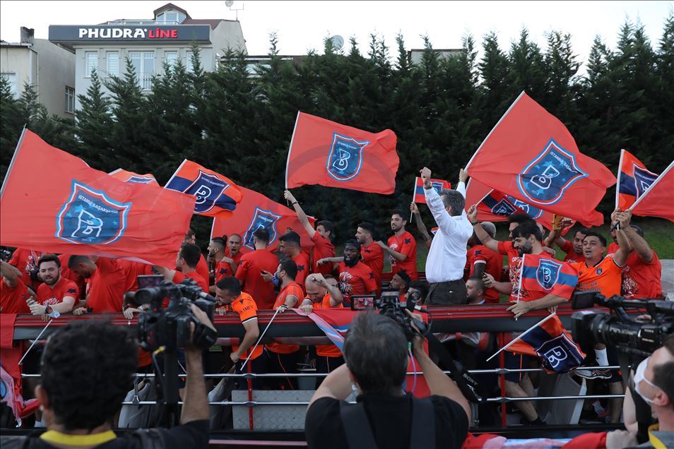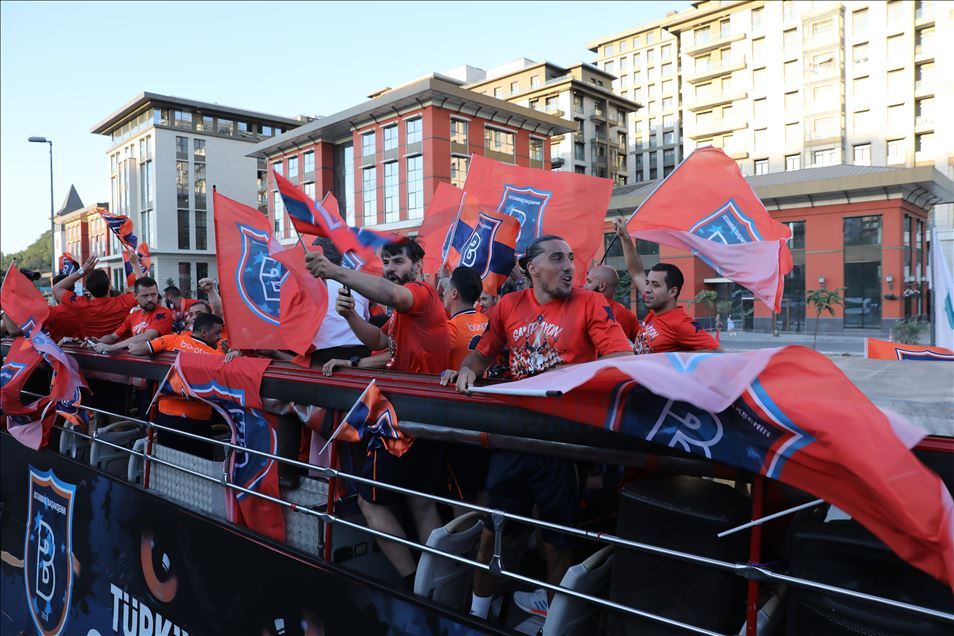 Süper Lig şampiyonu Medipol Başakşehir, Başakşehir Fatih Terim Stadı'nda düzenlenecek kupa törenine üstü açık otobüsle gitti. Medipol Başakşehirli futbolcular, güzergah üzerindeki vatandaşları selamladı.