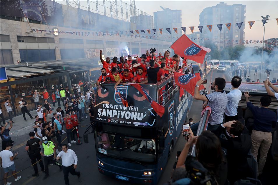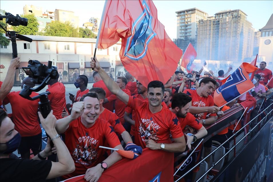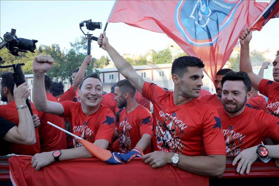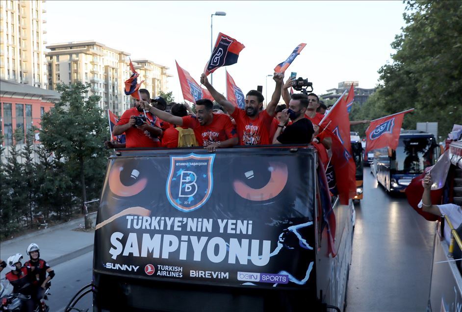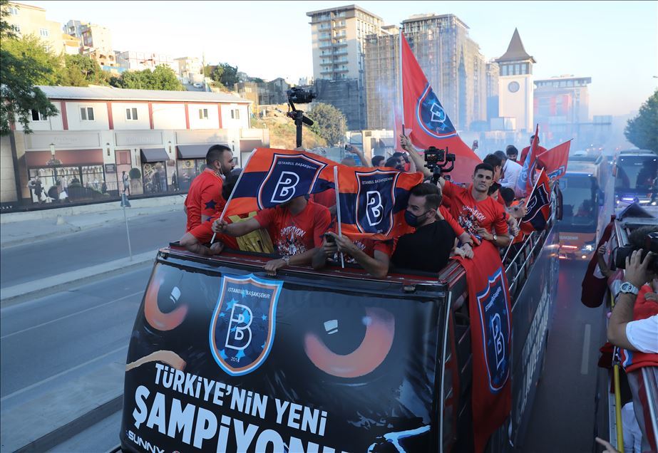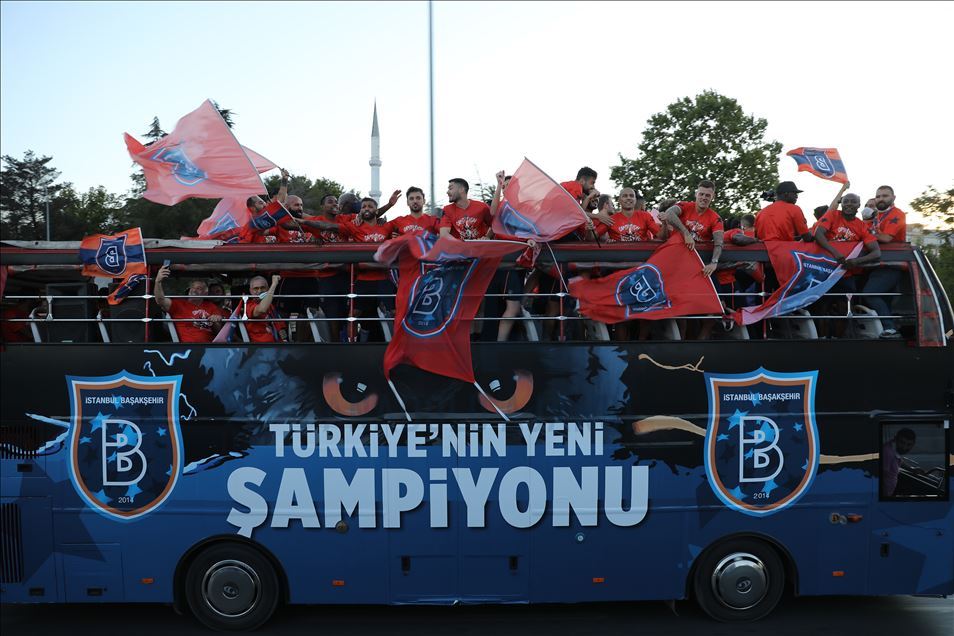 Süper Lig şampiyonu Medipol Başakşehir, Başakşehir Fatih Terim Stadı'nda düzenlenecek kupa törenine üstü açık otobüsle gitti. Medipol Başakşehirli futbolcular, güzergah üzerindeki vatandaşları selamladı. ( İsa Terli - Anadolu Ajansı )İsa Terli