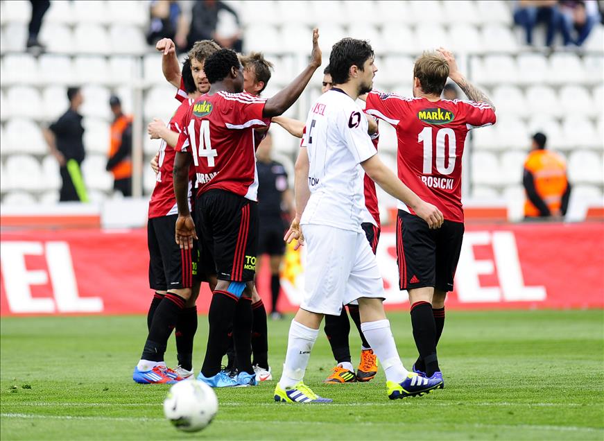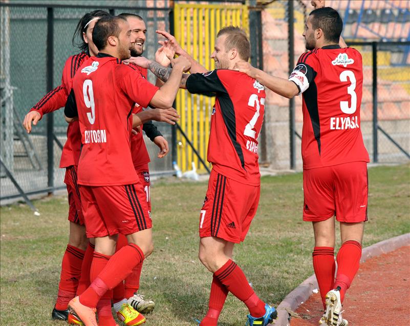 SPOR TOTO SUPER LIG'DEKI ESKISEHIRSPOR ILE GAZIANTEPSPOR TAKIMLARI KARSI KARSIYA GELDI. GAZIANTEPSPORLU FUTBOLCULAR ATTIKLARI GOL SONRASINDA BOYLE SEVINDI. (ANADOLU AJANSI - FATIH DOGAN) (20120325)FATIH DOGAN