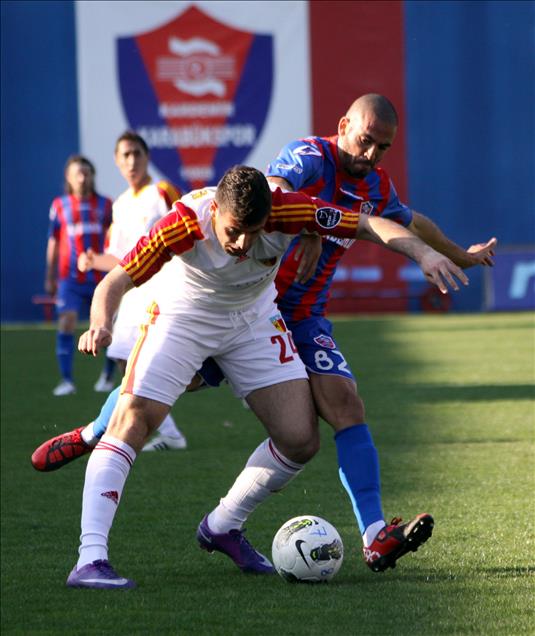 SPOR TOTO SUPER LIGI'NDE KARDEMIR KARABUKSPOR ILE KAYSERISPOR KARSI KARSIYA GELDI. EV SAHIBI TAKIMDA ILHAN PARLAK RAKIPLERI ILE MUCADELE ETTI . (ANADOLU AJANSI - AHMET OZLER) (20120325)AHMET OZLER