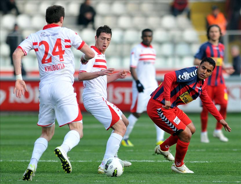 SPOR TOTO SUPER LIGI'NDE MKE ANKARAGUCU ILE ANTALYASPOR KARSILASTI. ANTALYASPORLU KEREM'IN RAKIBIYLE MUCADELESI GORULUYOR. (ANADOLU AJANSI - CEM OZDEL) (20120325)CEM OZDEL