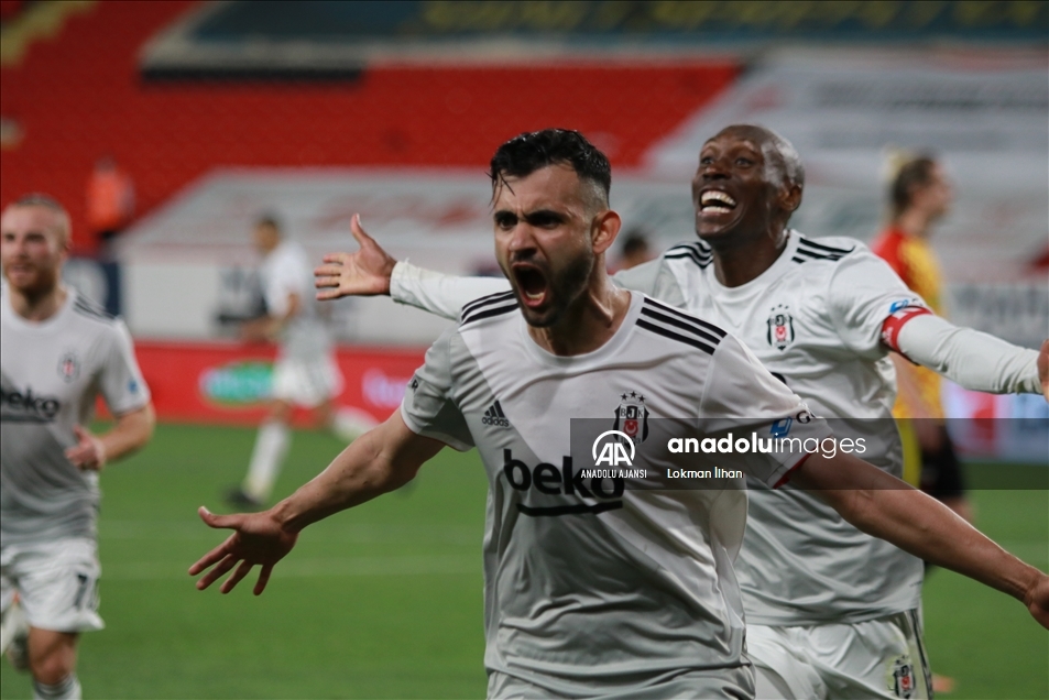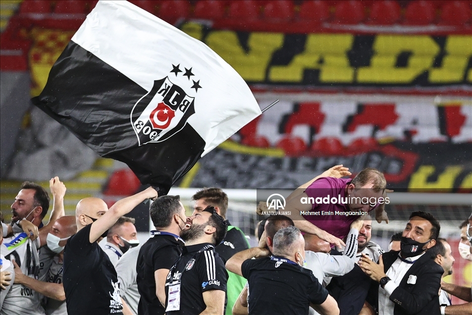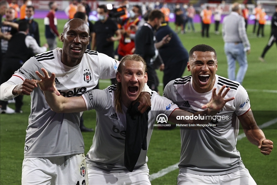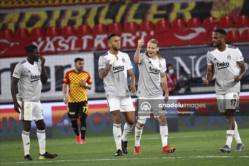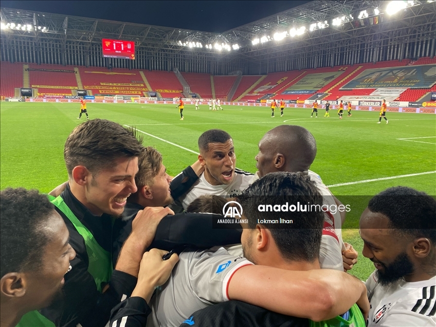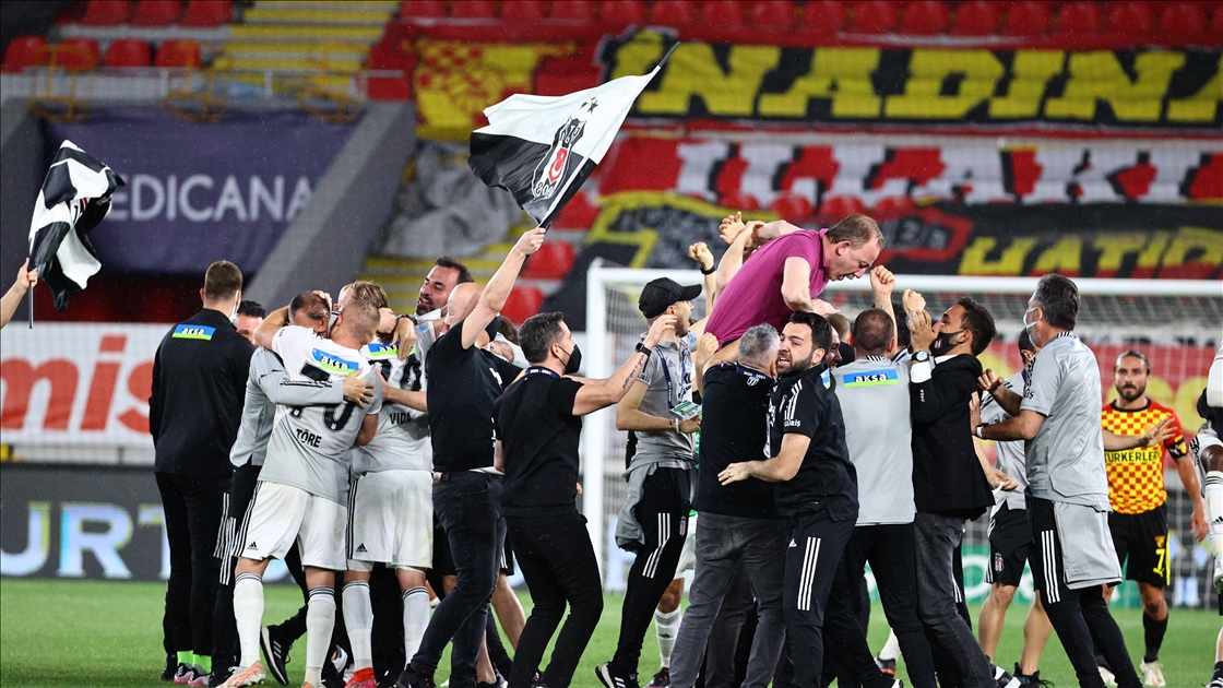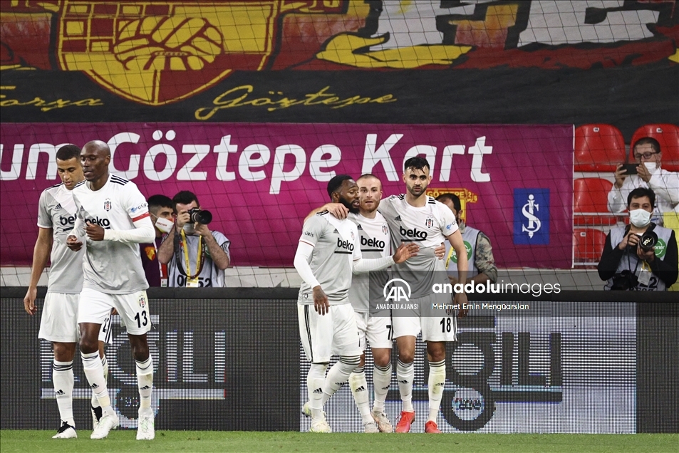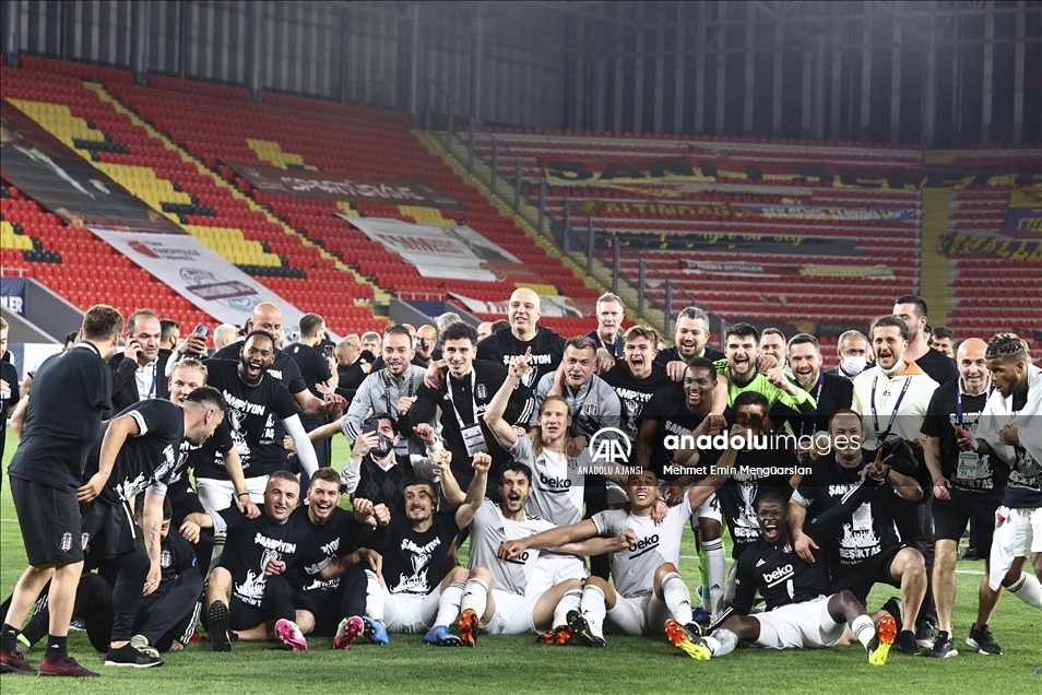 Süper Lig'in 42’nci haftasında Göztepe, İzmir Gürsel Aksel Stadı'nda Beşiktaş ile karşılaştı. Karşılaşmayı 2-1 kazanan Beşiktaş, bu skorla Süper Lig'de 2020-2021 sezonu şampiyon oldu. Beşiktaşlı futbolcular büyük sevinç yaşadı. ( Mehmet Emin Mengüarslan - Anadolu Ajansı )Mehmet Emin Mengüarslan