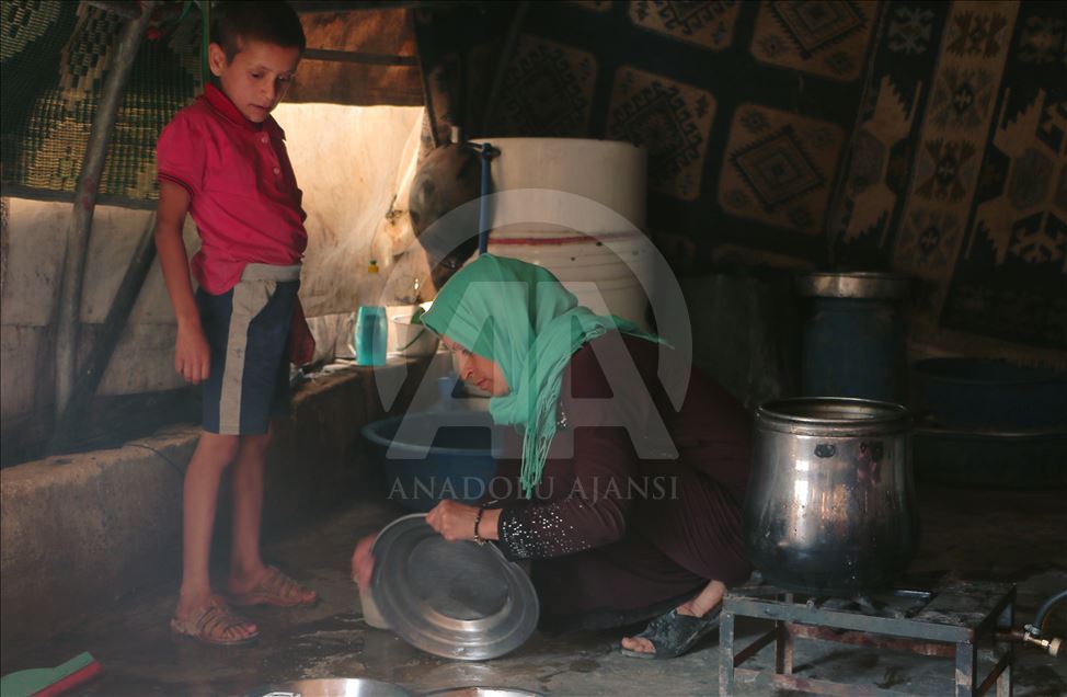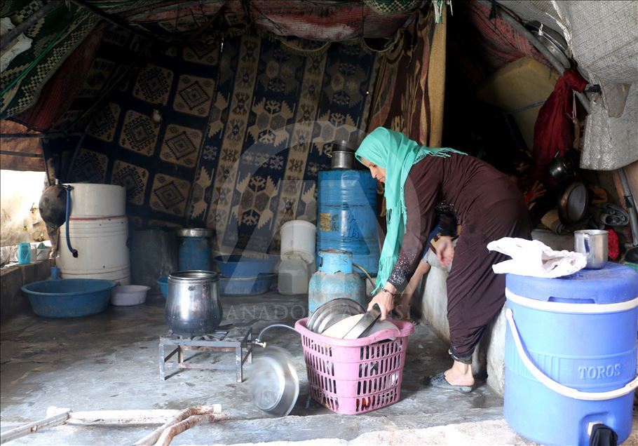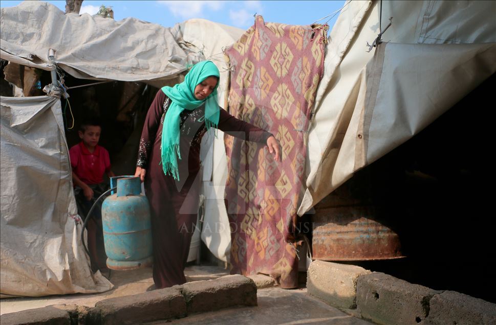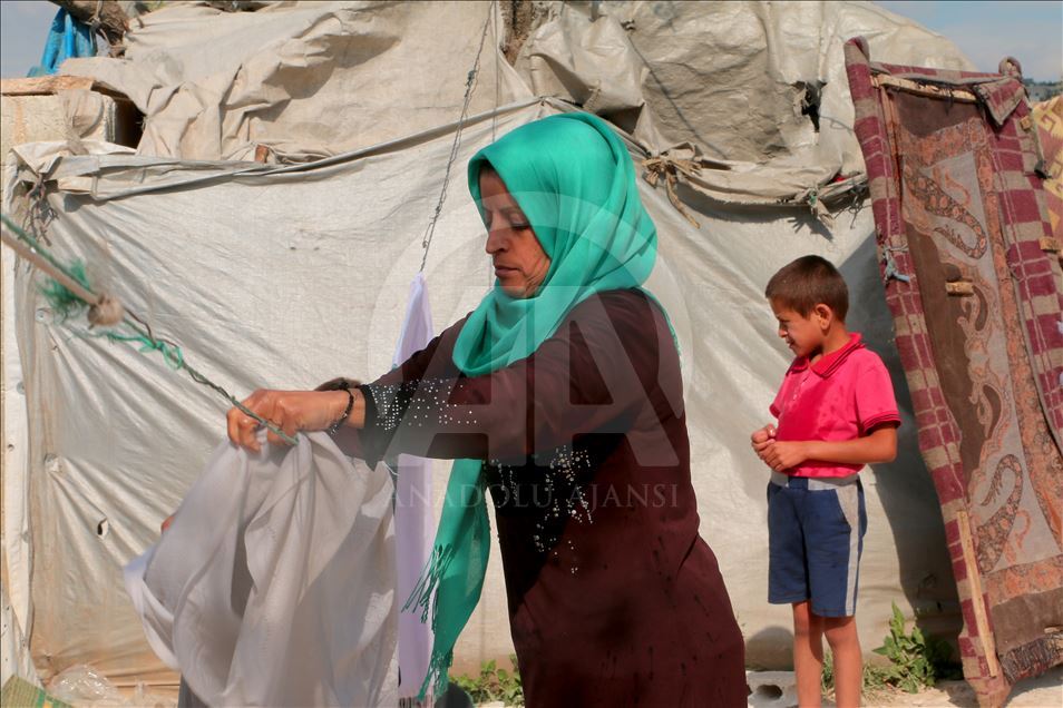 Suriye'de iç savaşın ilk yıllarında Beşşar Esed rejiminin Halep iline düzenlediği saldırılarda eşini kaybeden Emine Um Abdullah, İdlib'de sığındığı çadır kentte 6 çocuğuna bakabilmek için gecesini gündüzüne katarak çalışıyor. Um Abdullah, zorlu yaşam hikayesini AA muhabirine anlattı.