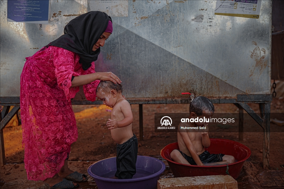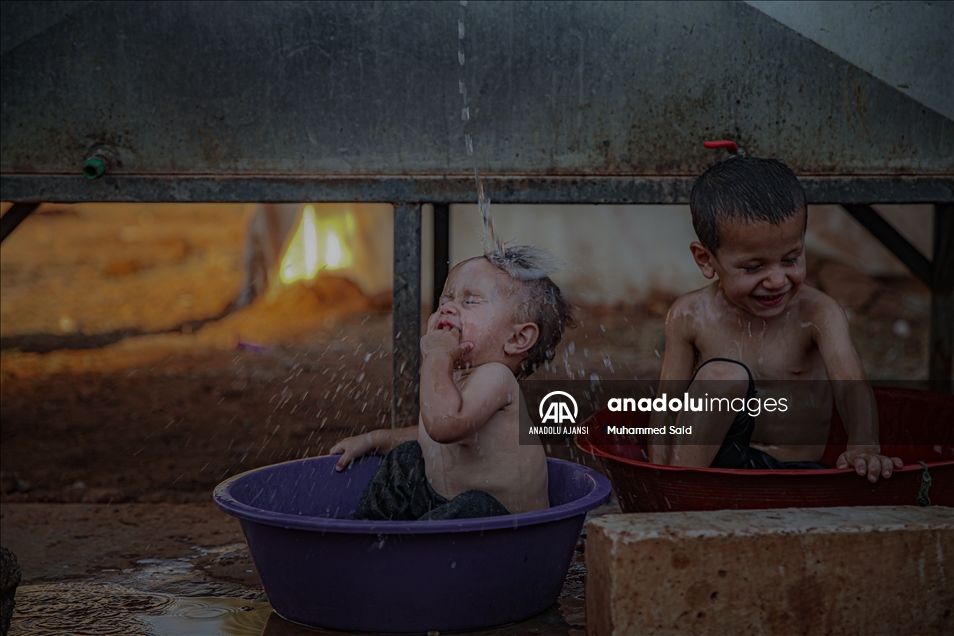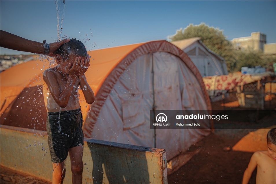 Suriye'deki kamplarda yaşayan siviller aşırı sıcaklarla da mücadele ediyor
