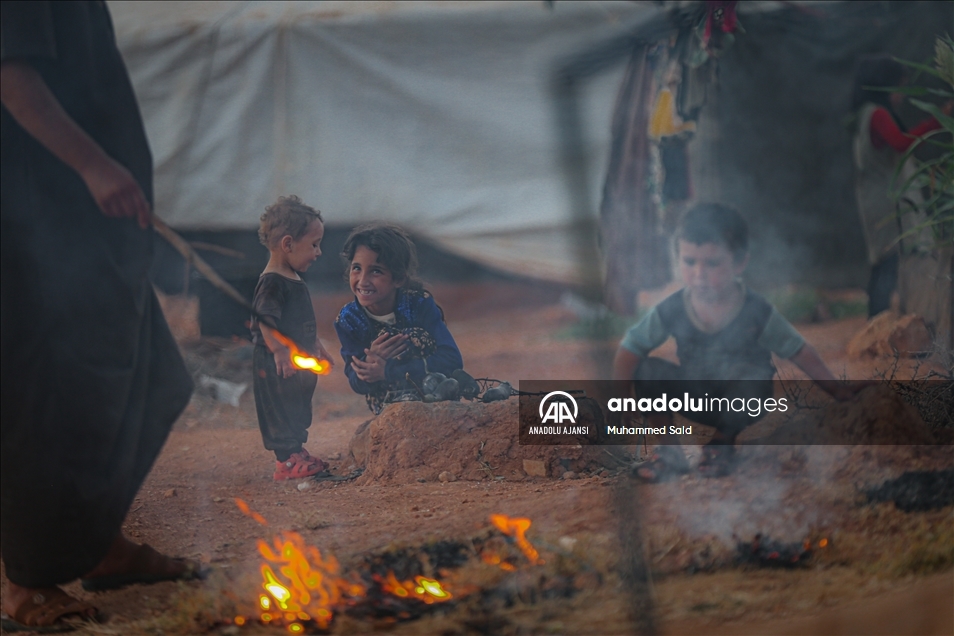 Suriye'nin kuzeybatısındaki İdlib ilinde zorla yerlerinden edilerek kamplara sığınan siviller, derme çatma çadırlarda, mevsim normallerinin oldukça üzerinde seyreden sıcaklıkla da mücadele ediyor.