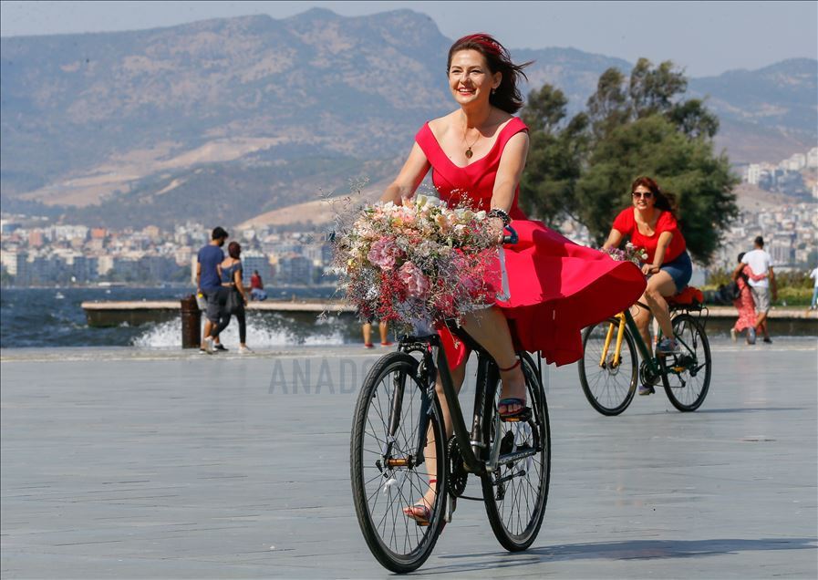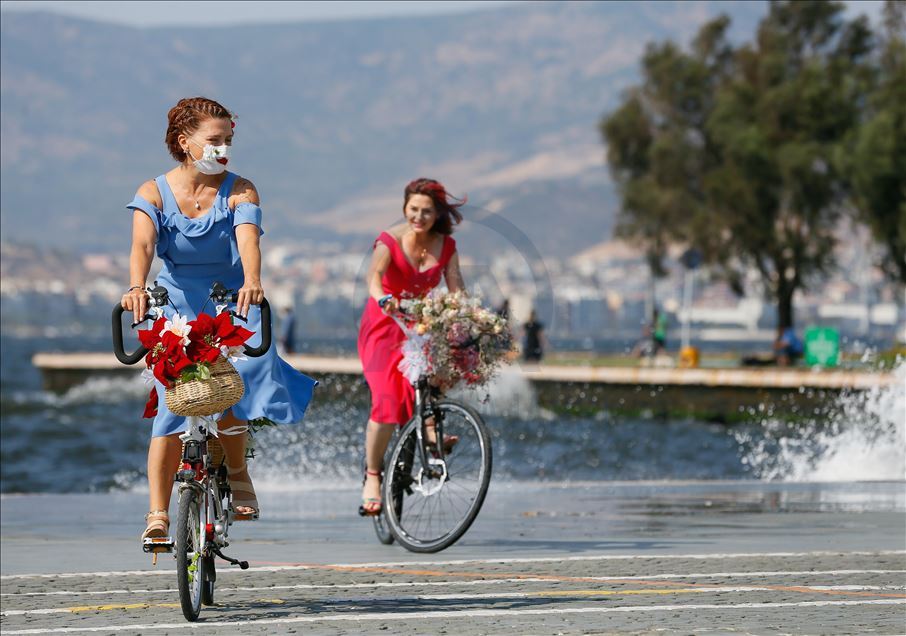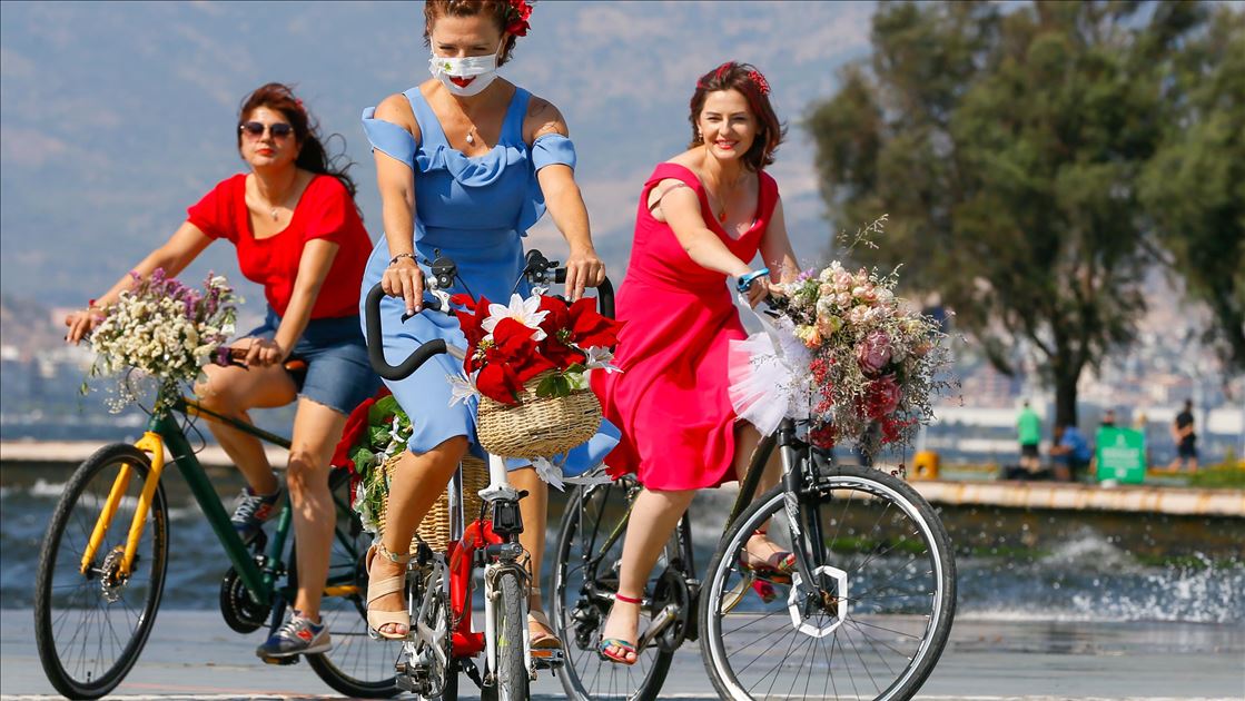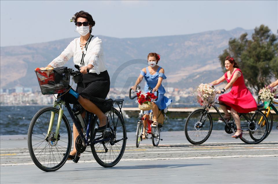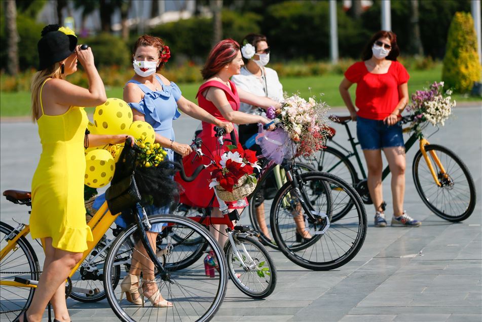 İzmirli kadınlar tarafından 7 yıl önce başlatılan ve daha sonra yurt içi ve dışında 115 şehre yayılan "Süslü Kadınlar Bisiklet Turu"nun 8'incisi bu sene, yeni tip koronavirüs (Kovid-19) salgını nedeniyle bireysel olarak gerçekleşti. Balon, çiçek ve oyuncaklarla bisikletlerini süsleyen kadınlar, Cumhuriyet Meydanı'nda bir araya geldi.