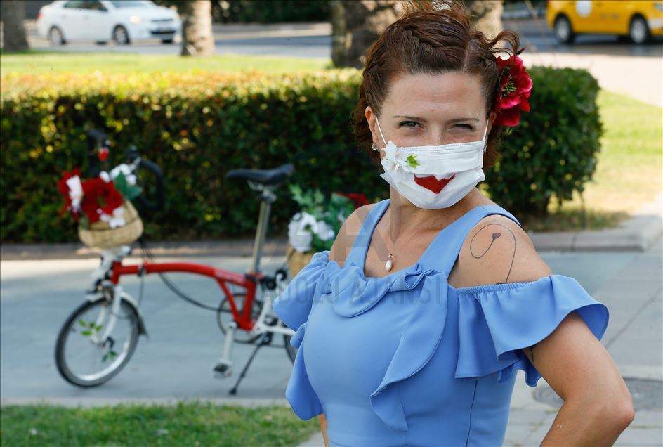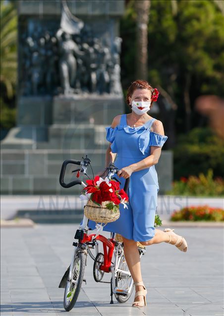 İzmirli kadınlar tarafından 7 yıl önce başlatılan ve daha sonra yurt içi ve dışında 115 şehre yayılan "Süslü Kadınlar Bisiklet Turu"nun 8'incisi bu sene, yeni tip koronavirüs (Kovid-19) salgını nedeniyle bireysel olarak gerçekleşti. Balon, çiçek ve oyuncaklarla bisikletlerini süsleyen kadınlar, Cumhuriyet Meydanı'nda bir araya geldi. ( Ömer Evren Atalay - Anadolu Ajansı )Ömer Evren Atalay
