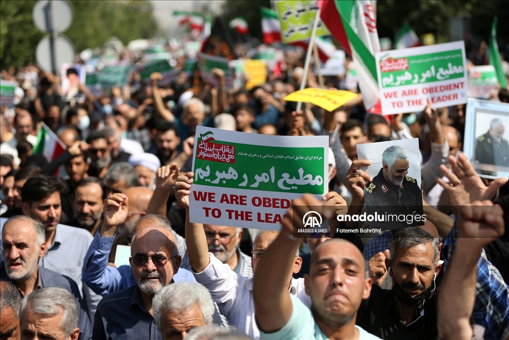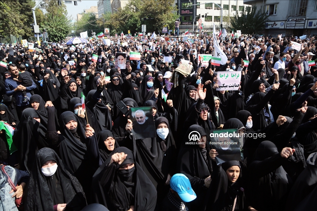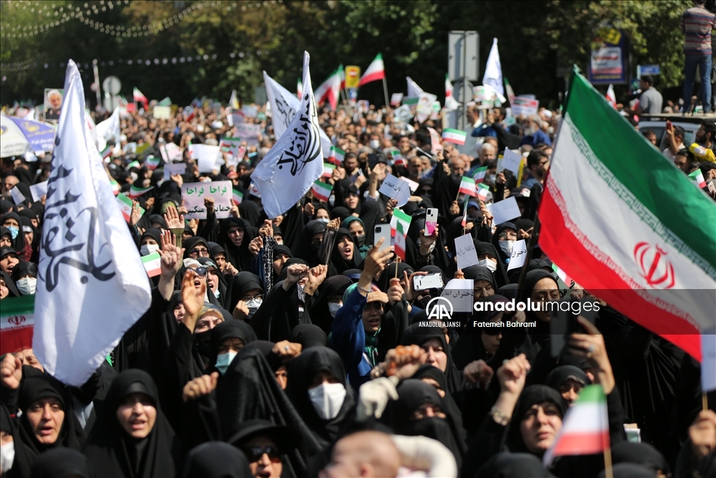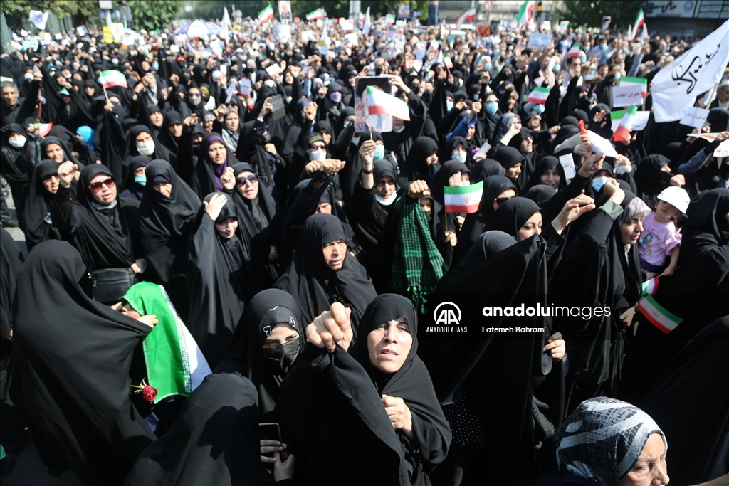 İran'da "başörtüsü kurallarına uymadığı" gerekçesiyle gözaltına alınan Mahsa Emini'nin ölümü üzerine başlayan protestolar sürerken, başkent Tahran’da cuma namazı sonrası "yönetime destek" yürüyüşü düzenlendi.