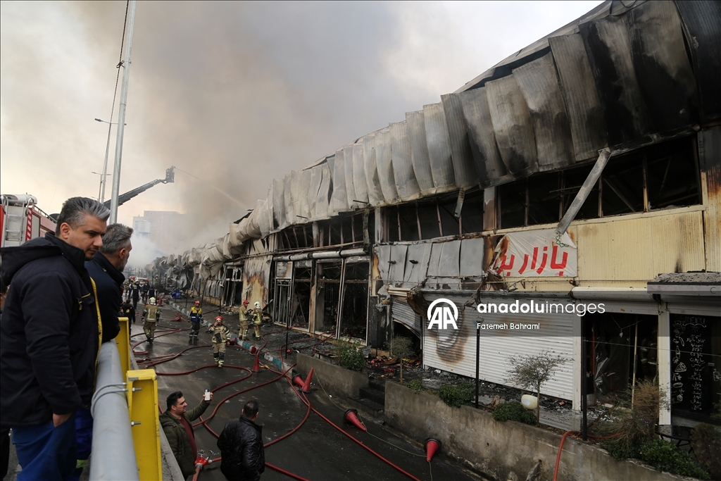 İran'ın başkenti Tahran'daki Niyayesh–Cennetabad kavşağında bulunan Cennet Çarşısı'nda yangın çıktı. Büyük ölçüde yanıcı malzemelerden inşa edilmiş bir hangarda çıkan yangına birden fazla noktadan müdahale edilirken olay yerinden yoğun dumanlar yükseldi. 200 dükkanın tamamen yandığı olayda, alevler kontrol altına alındı. İranlı vatandaşlar, yangını yakından takip etti. ( Fatemeh Bahrami - Anadolu Ajansı )Fatemeh Bahrami