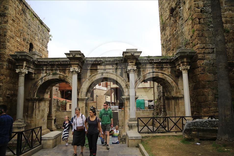 Antalya Muratpaşa Belediyesi, Bergama Krallığı'ndan Roma'ya, Bizans'tan Selçuklu'ya ve Osmanlı'ya kadar zengin bir tarihi geçmişe sahip Kaleiçi'nin, UNESCO'nun Dünya Miras Listesine alınması için başvuruda bulunmaya hazırlanıyor. Kaleiçi'nde UNESCO adaylığı için kültürel miras örnekleri arasında Hardianus Kapısı da yer alıyor. ( Mustafa Çiftçi - Anadolu Ajansı )Mustafa Çiftçi