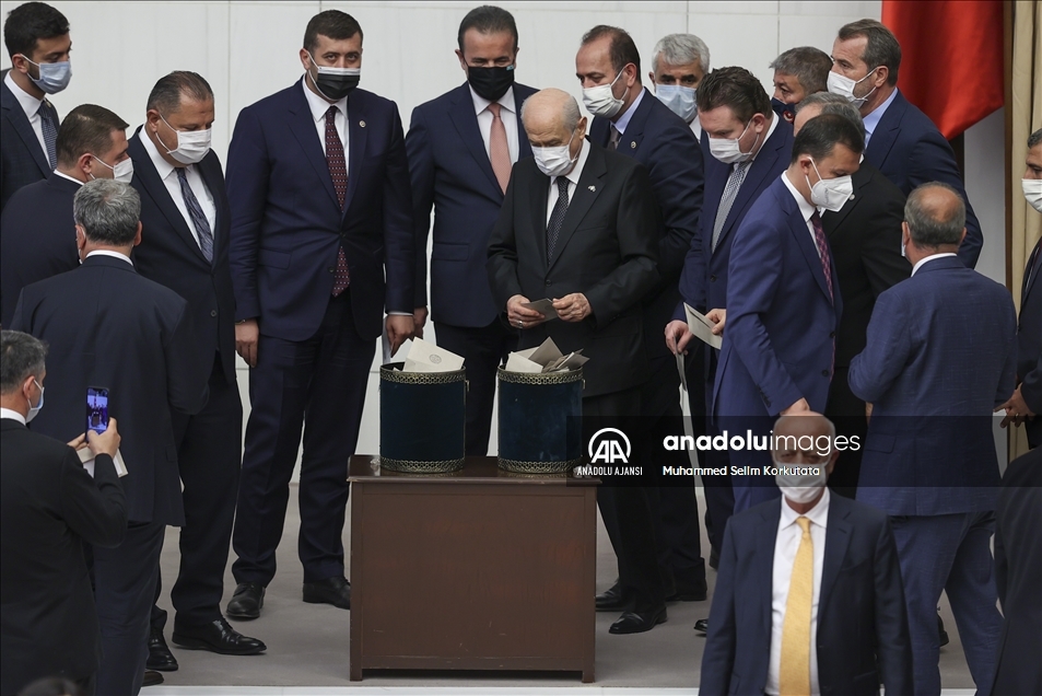 Meclis Genel Kurulunda, Hakimler ve Savcılar Kurulunun (HSK) 7 üyesinin belirlenmesi için seçim yapıldı. MHP Genel Başkanı Devlet Bahçeli ve beraberindeki milletvekilleri oylarını kullandı. ( Muhammed Selim Korkutata - Anadolu Ajansı )Muhammed Selim Korkutata