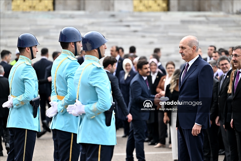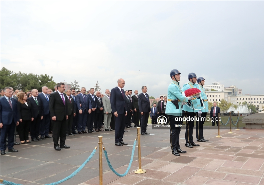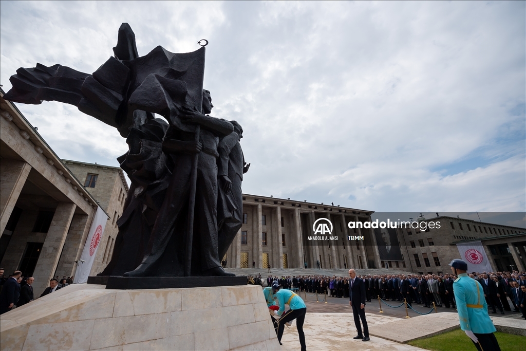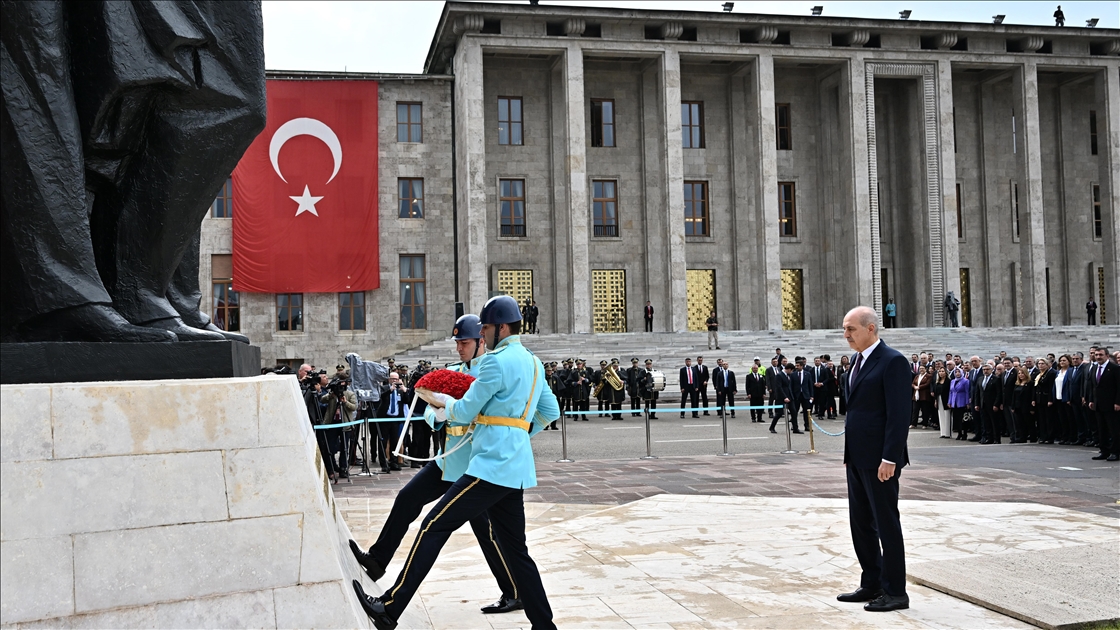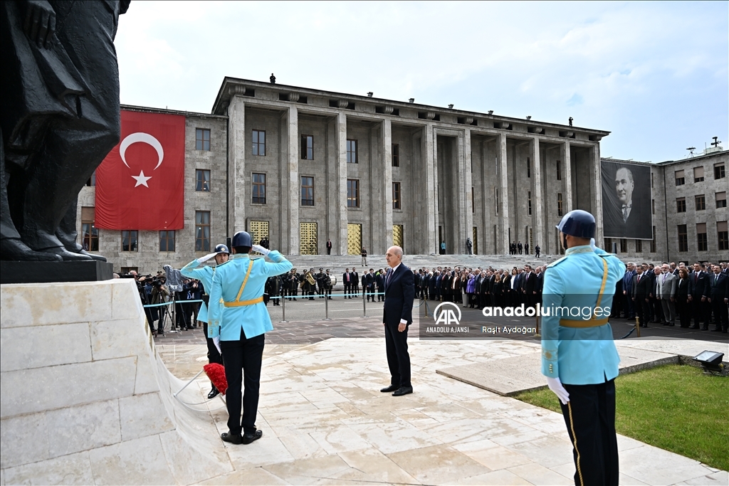 28. Dönem 2. Yasama Yılı açılışı dolayısıyla Türkiye Büyük Millet Meclisi'ndeki (TBMM) Atatürk Anıtı önünde tören düzenlendi. Törene katılan TBMM Başkanı Numan Kurtulmuş, saygı duruşunun ardından Atatürk Anıtına çelenk bıraktı. ( Raşit Aydoğan - Anadolu Ajansı )Raşit Aydoğan