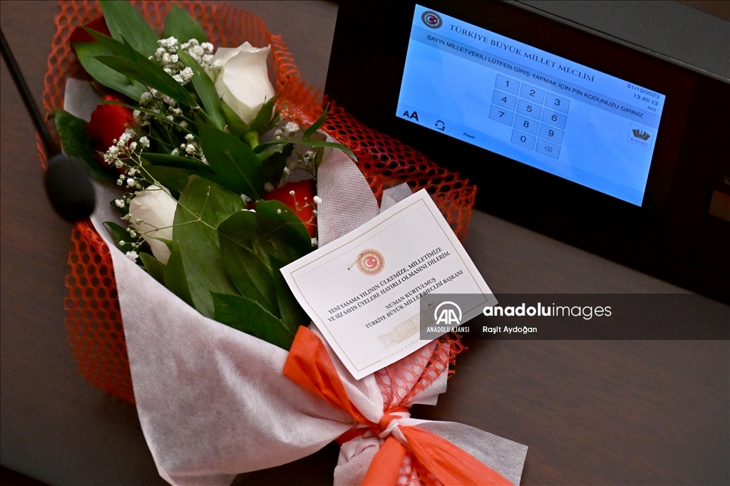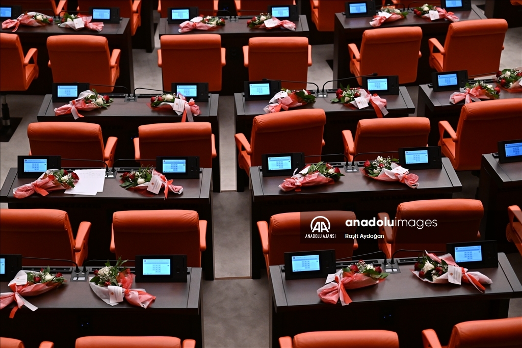 TBMM Genel Kurulu, 28. Dönem 2. Yasama Yılı açılışı dolayısıyla TBMM Başkanı Numan Kurtulmuş başkanlığında toplandı. Genel Kurul Salonunda milletvekillerinin oturdukları sıralara çiçek bırakıldı. ( Raşit Aydoğan - Anadolu Ajansı )Raşit Aydoğan