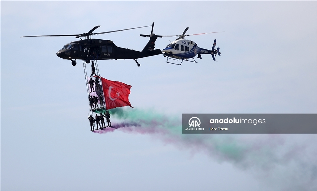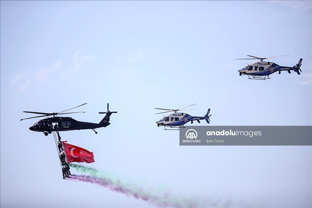Dünyanın en büyük havacılık, uzay ve teknoloji festivali TEKNOFEST, ikinci gününde Atatürk Havalimanı'nda devam etti. Festival kapsamında Emniyet Genel Müdürlüğü'ne bağlı helikopterler ve Özel Harekat Başkanlığı tarafından gösteri uçuşu gerçekleştirildi. ( Berk Özkan - Anadolu Ajansı )Berk Özkan