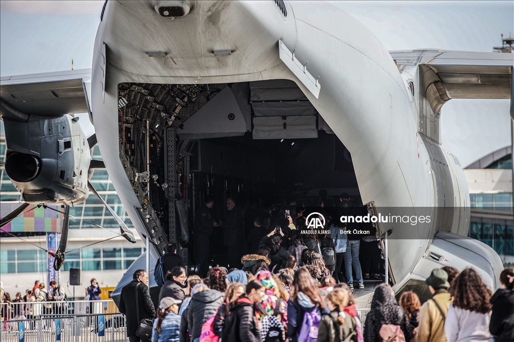Dünyanın en büyük havacılık, uzay ve teknoloji festivali TEKNOFEST, ikinci gününde Atatürk Havalimanı'nda devam etti. Festival kapsamında Türk Hava Kuvvetleri'ne ait ''A400M'' uçağı vatandaşlar tarafından yoğun ilgi gördü. ( Berk Özkan - Anadolu Ajansı )Berk Özkan