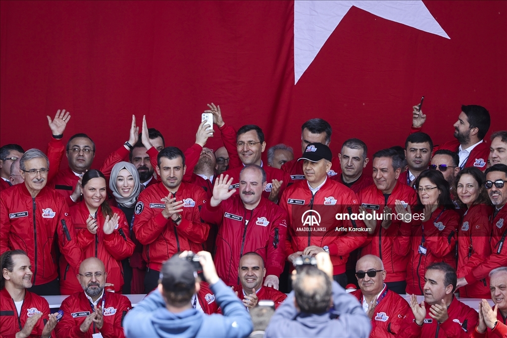 Dünyanın en büyük havacılık, uzay ve teknoloji festivali TEKNOFEST, ikinci gününde Atatürk Havalimanı'nda devam etti. Sanayi ve Teknoloji Bakanı Mustafa Varank (sağ 4), Baykar Yönetim Kurulu Başkanı Selçuk Bayraktar (sol 3), Cumhurbaşkanlığı Savunma Sanayii Başkanı İsmail Demir (solda) ve İstanbul Valisi Ali Yerlikaya (sağ 3) da açılış törenine katıldı. ( Arife Karakum - Anadolu Ajansı )Arife Karakum