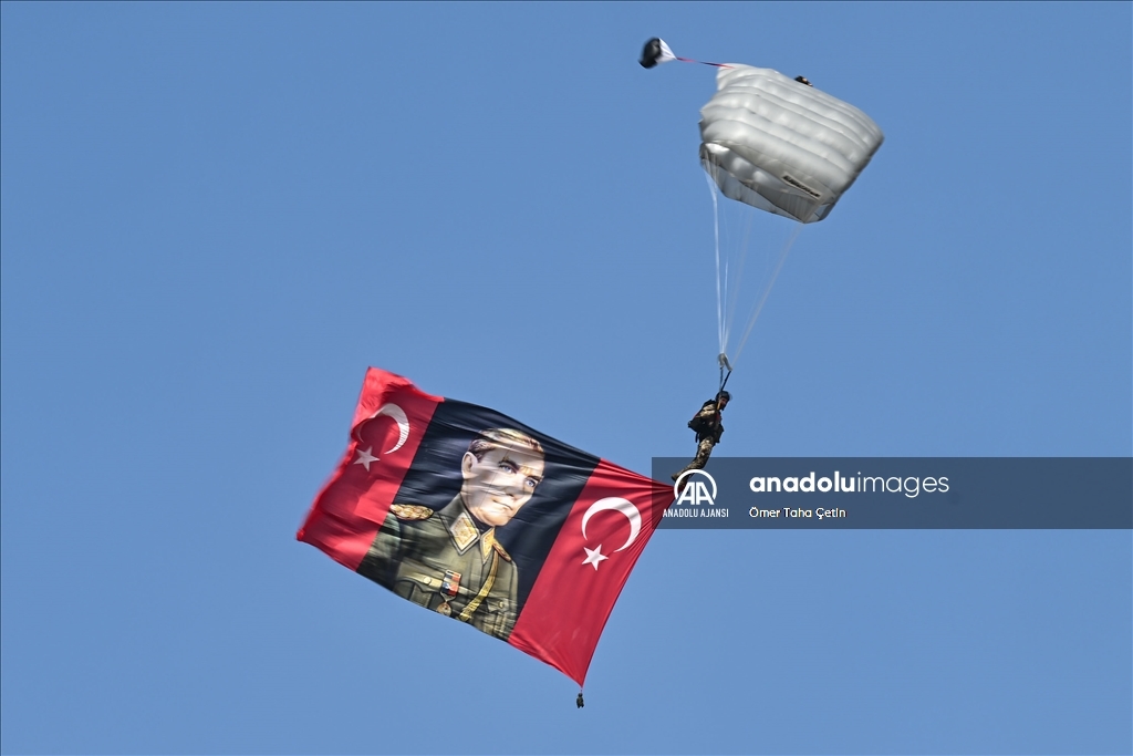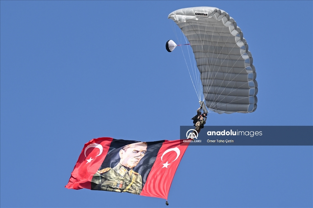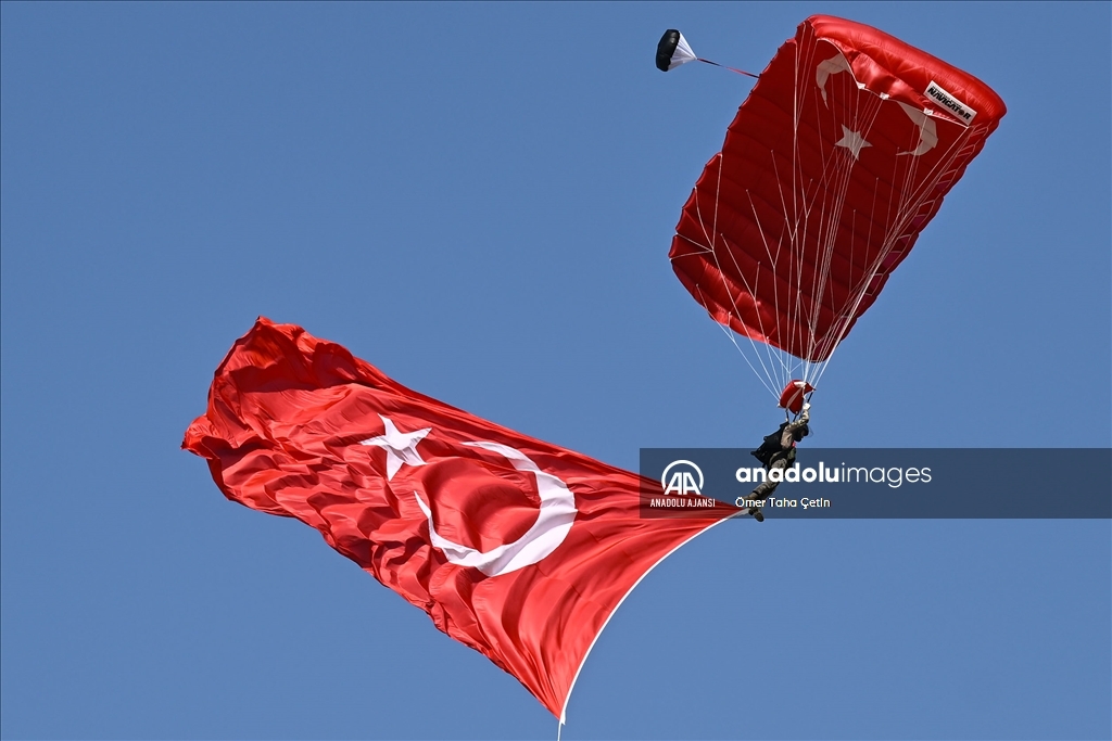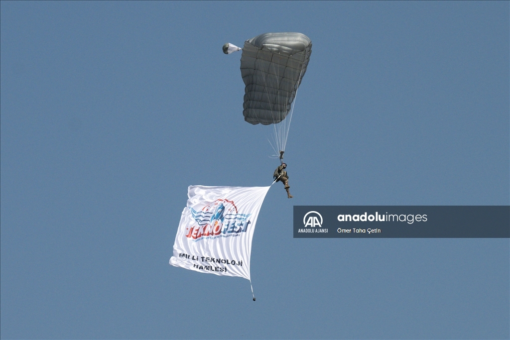 Türkiye Teknoloji Takımı Vakfı (T3) ile Sanayi ve Teknoloji Bakanlığı yürütücülüğünde düzenlenen havacılık, uzay ve teknoloji festivali TEKNOFEST İzmir, kapılarını açtı. Bu yıl üçüncüsü İzmir'de düzenlenen TEKNOFEST, Çiğli Havaalanı'nda başladı. Program kapsamında paraşütle gösteri atlayışı gerçekleştirildi. ( Ömer Taha Çetin - Anadolu Ajansı )Ömer Taha Çetin