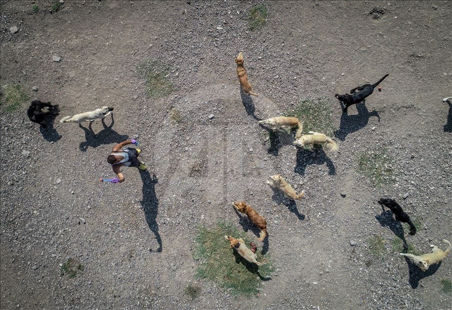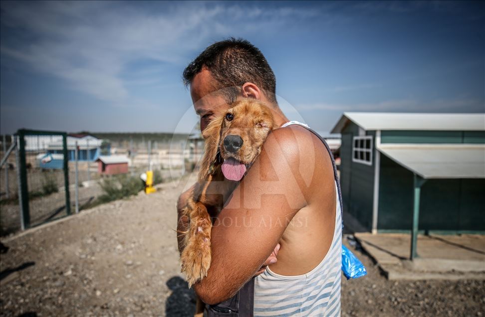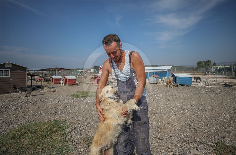 Bursa'da bakılmaya muhtaç ve terk edilmiş köpeklere hayatını adayan Emre Demir, 300'ü aşkın köpeğe bağışlarla kurulan barınakta bakıyor. ( Sergen Sezgin - Anadolu Ajansı )Sergen Sezgin