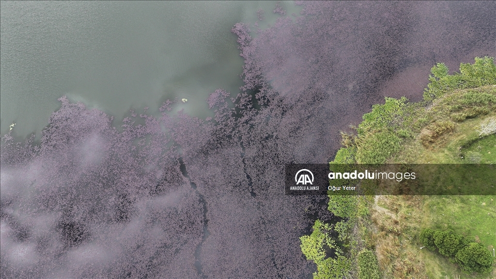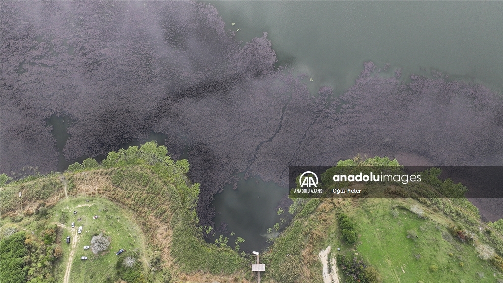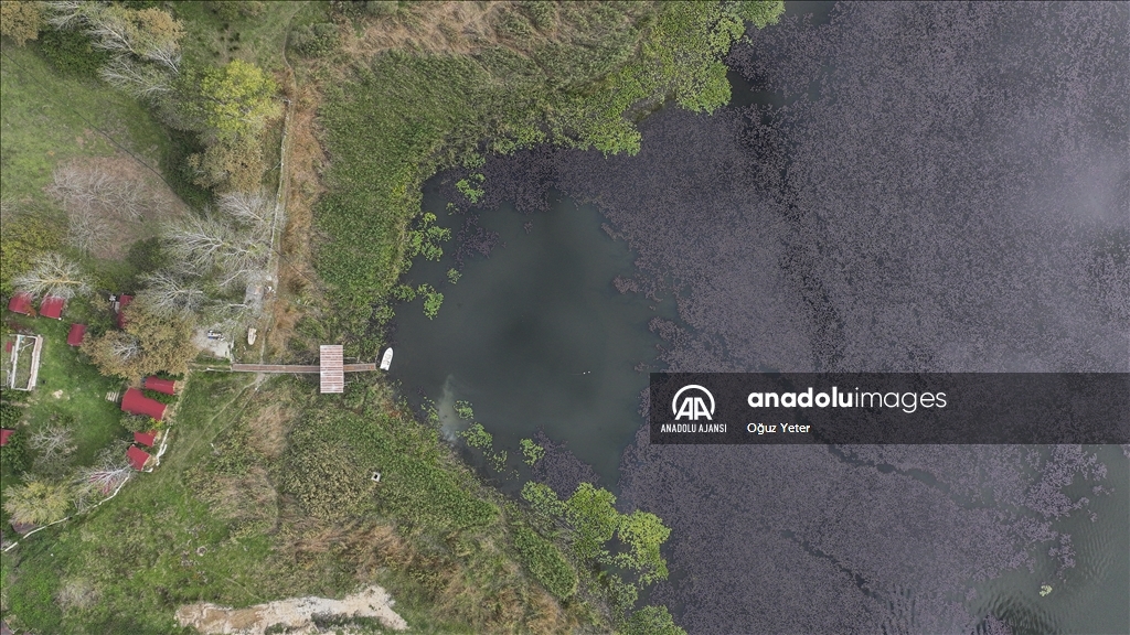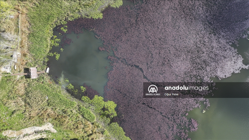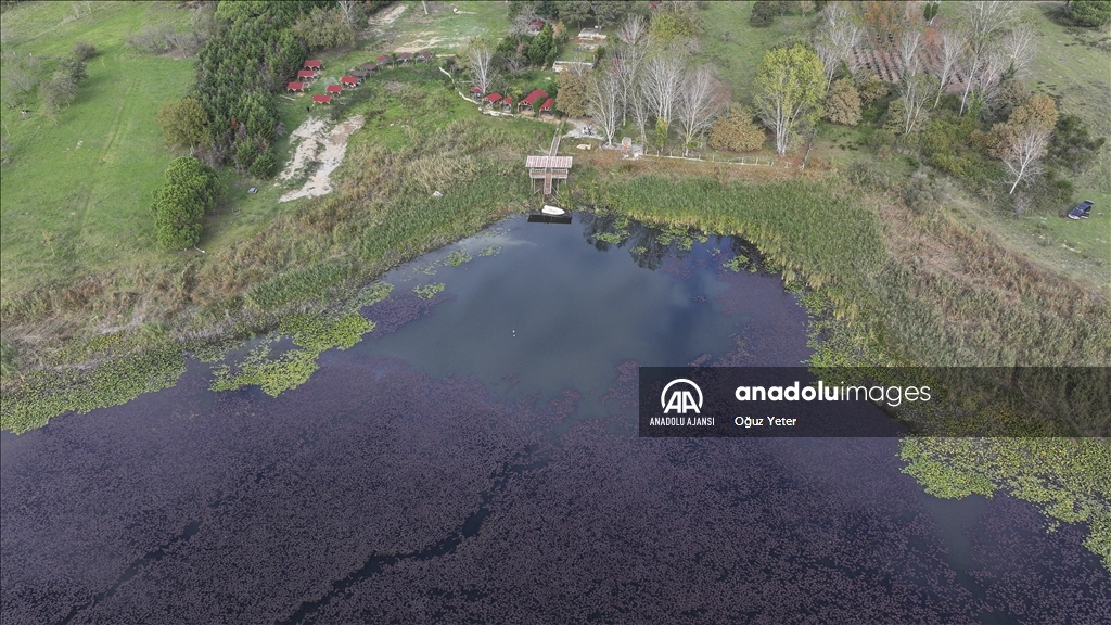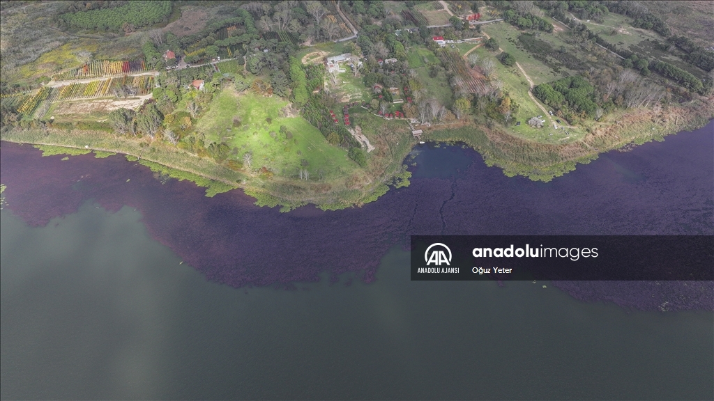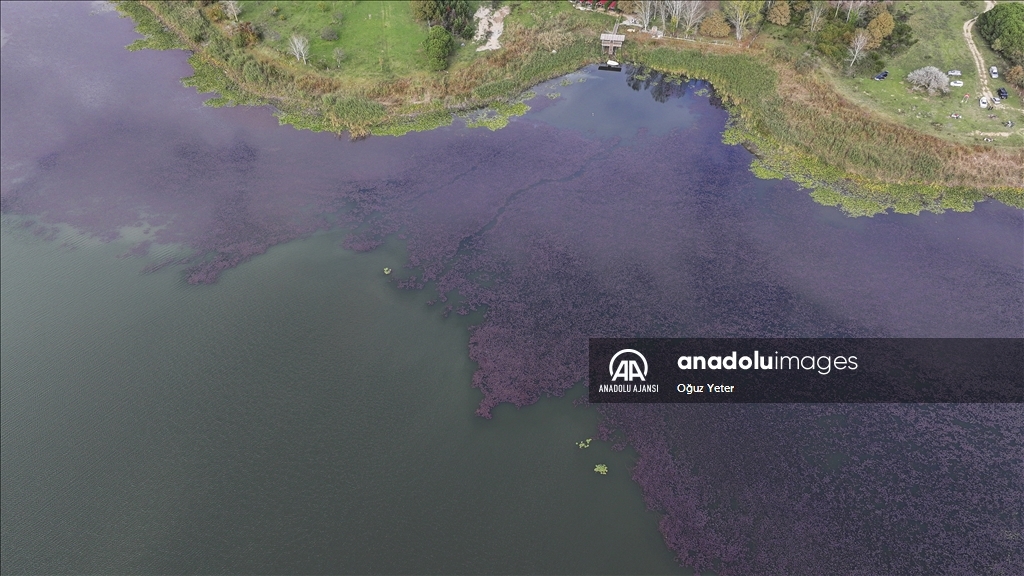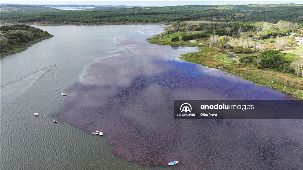 İstanbul'un Çatalca ve Arnavutköy ilçesinde yer alan Terkos Gölü'ndeki yeşil bitkilerin sonbaharla birlikte renk değiştirmesi dronla kaydedildi.