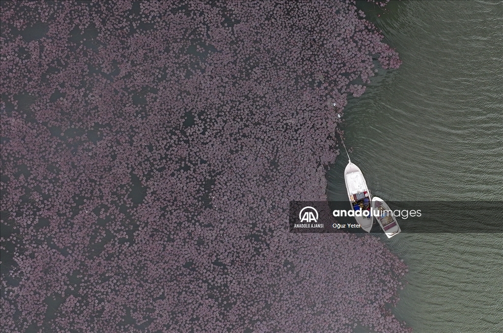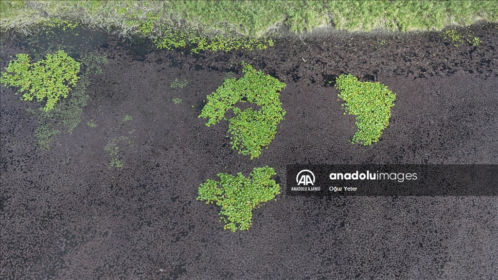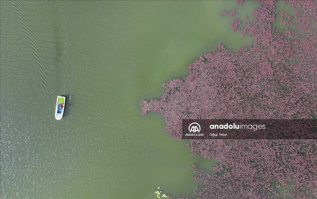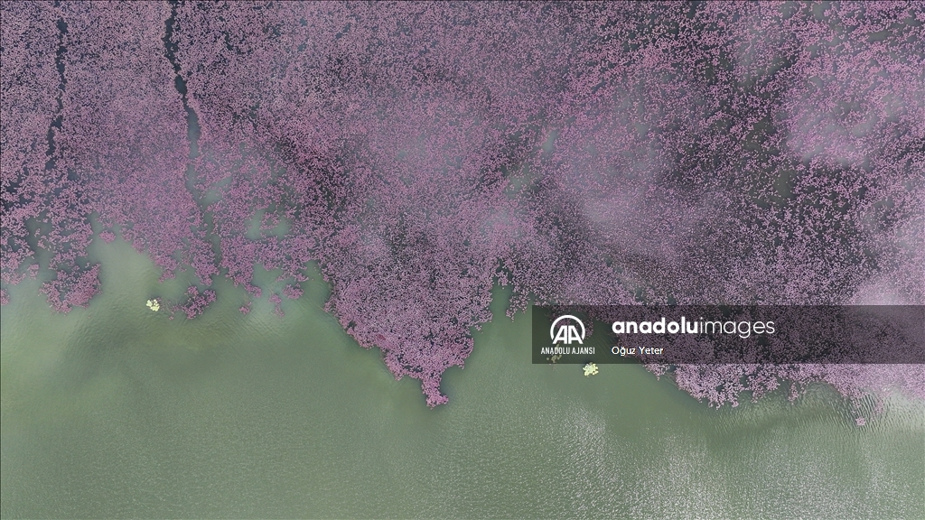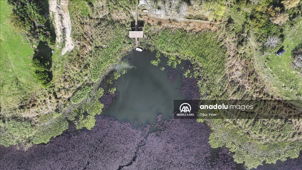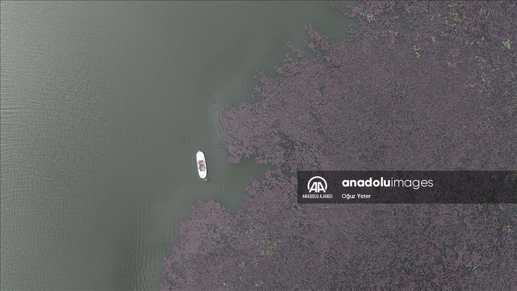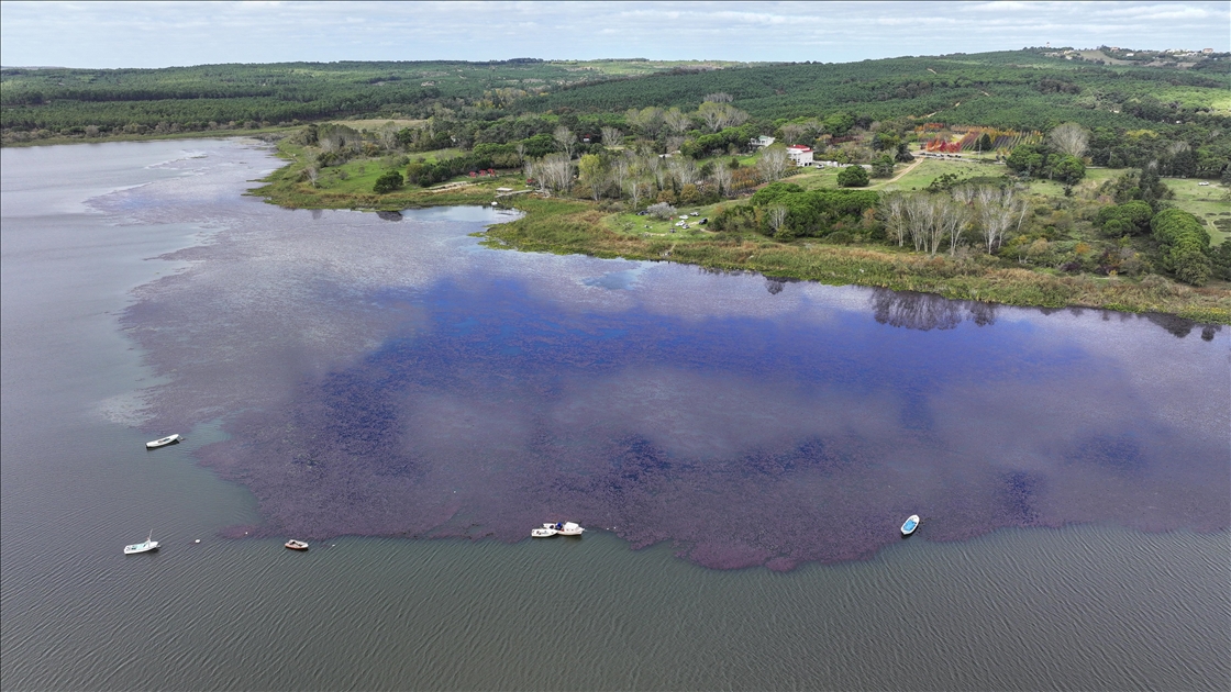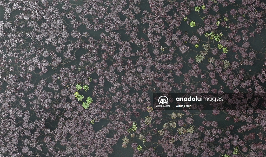 İstanbul'un Çatalca ve Arnavutköy ilçesinde yer alan Terkos Gölü'ndeki yeşil bitkilerin sonbaharla birlikte renk değiştirmesi dronla kaydedildi.