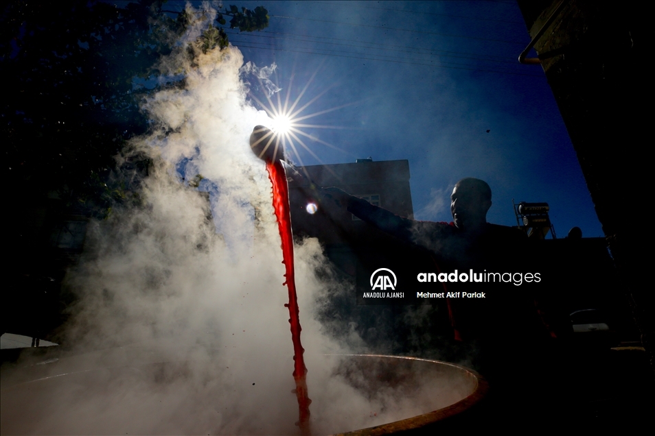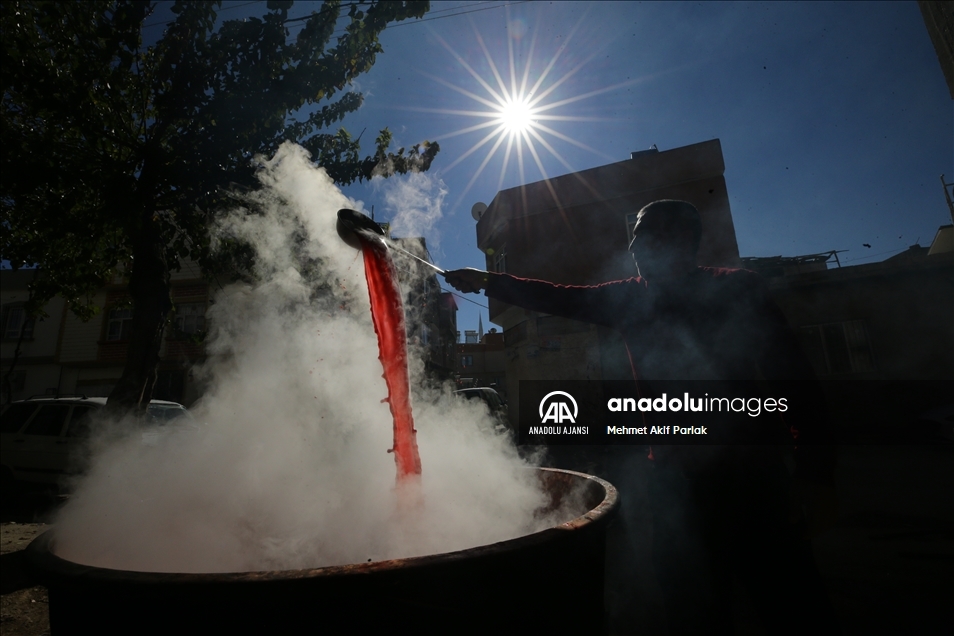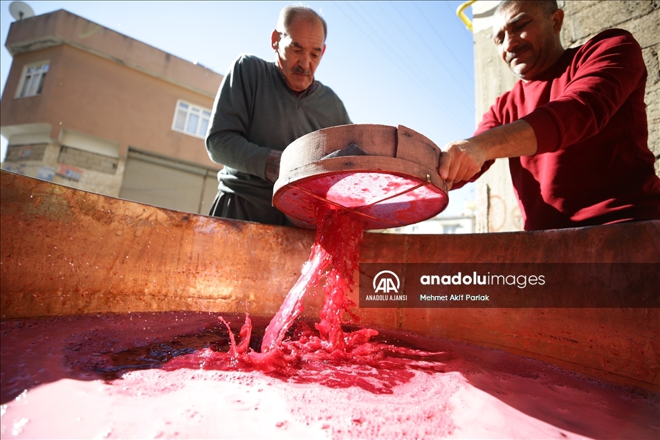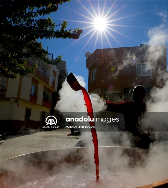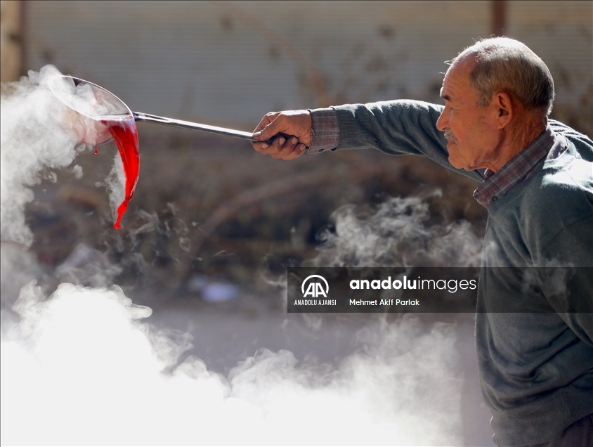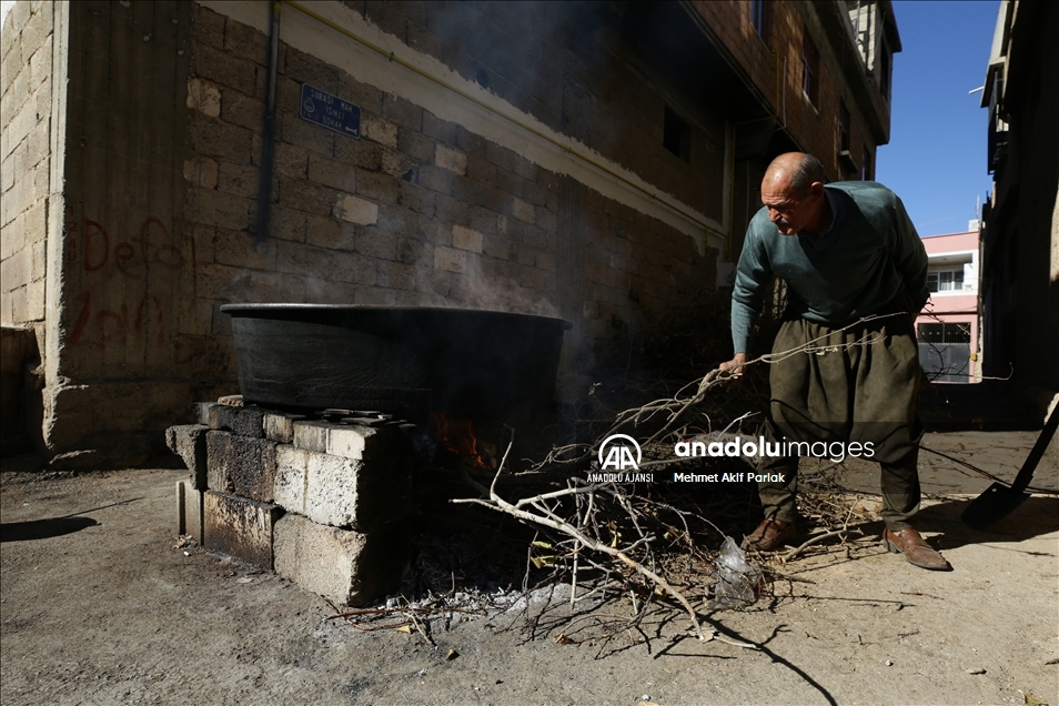 Gaziantep'in Oğuzeli ilçesinin Türk Patent ve Marka Kurumunca tescillenerek coğrafi işaret alınan narından yılda yaklaşık 50 ton ekşi üretiliyor. tarladan toplanan ve mahalle aralarına getirilen narlar geleneksel yöntemle nar ekşisine dönüştürülüyor. Dev kazanlara aktarılan nar suyu, binbir emek ve zahmetle, saatlerce kaynatılıyor. Vatandaşlar, kaynatma işlemi öncesi hazırlık yapıyor. ( Mehmet Akif Parlak - Anadolu Ajansı )Mehmet Akif Parlak