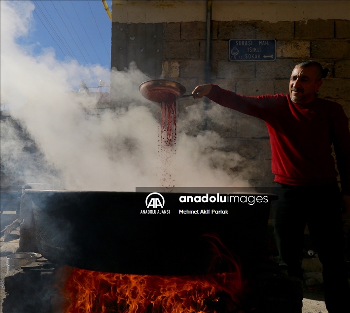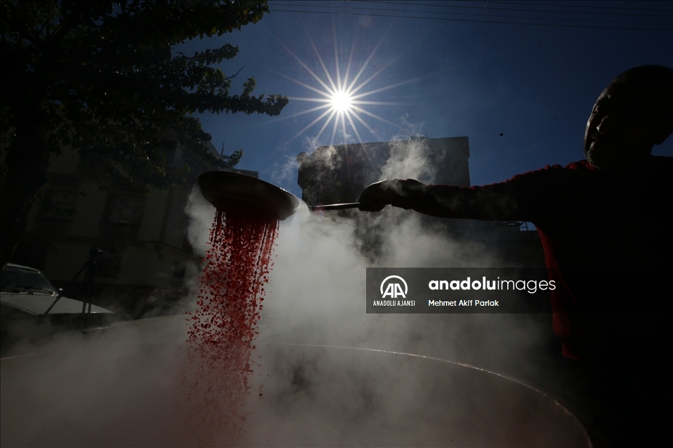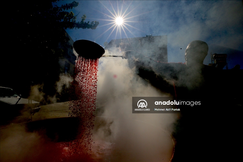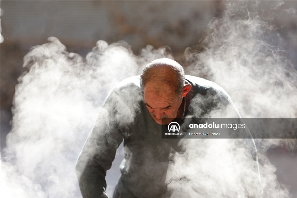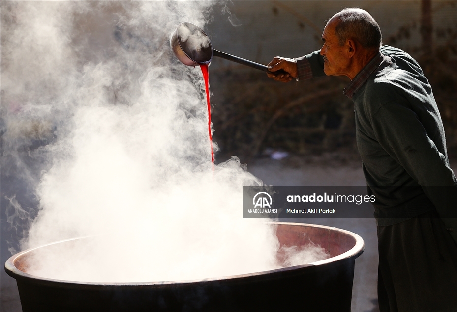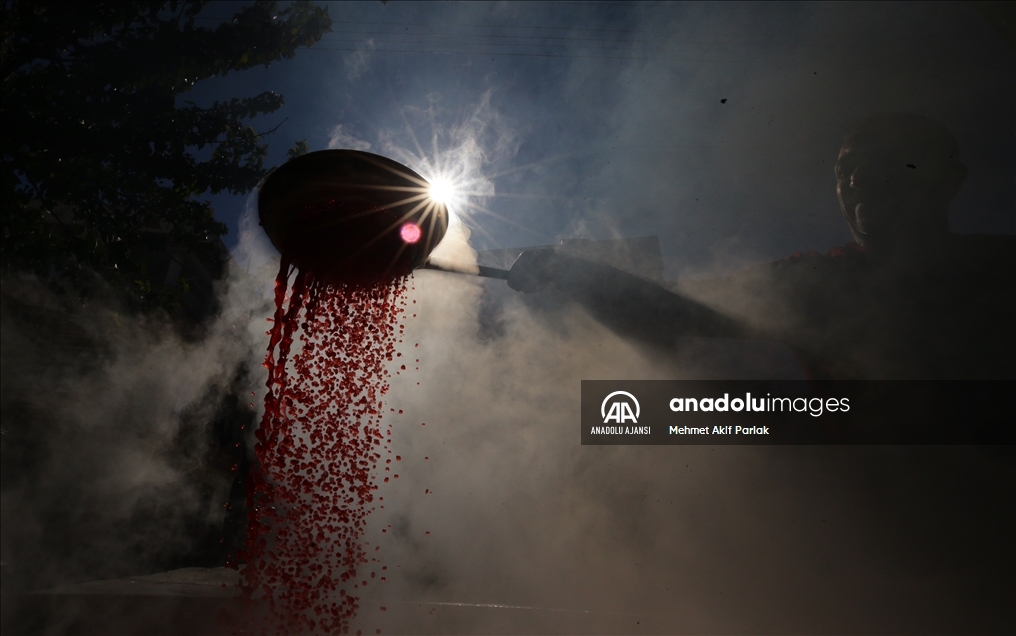 Gaziantep'in Oğuzeli ilçesinin Türk Patent ve Marka Kurumunca tescillenerek coğrafi işaret alınan narından yılda yaklaşık 50 ton ekşi üretiliyor. tarladan toplanan ve mahalle aralarına getirilen narlar geleneksel yöntemle nar ekşisine dönüştürülüyor. Dev kazanlara aktarılan nar suyu, binbir emek ve zahmetle, saatlerce kaynatılıyor. Vatandaşlar, kaynatma işlemi öncesi hazırlık yapıyor. ( Mehmet Akif Parlak - Anadolu Ajansı )Mehmet Akif Parlak