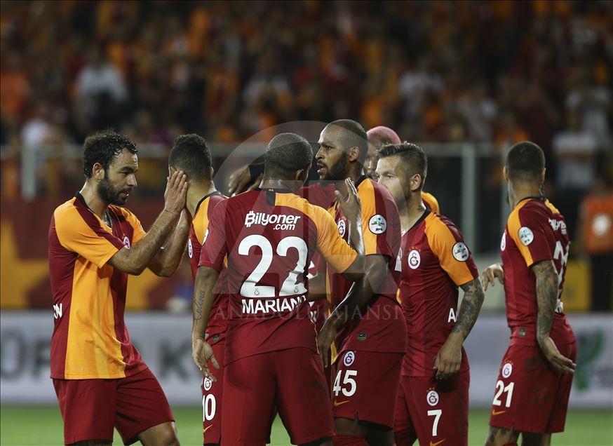 2018-2019 Süper Lig ve Türkiye Kupası şampiyonu Galatasaray ile kupa finalisti Akhisarspor, TFF Süper Kupa maçında Eryaman Stadı’nda karşılaştı. Galatasraylı oyuncular attıkları bir gol sonrası sevinç yaşadı. ( Erçin Top - Anadolu Ajansı )Erçin Top