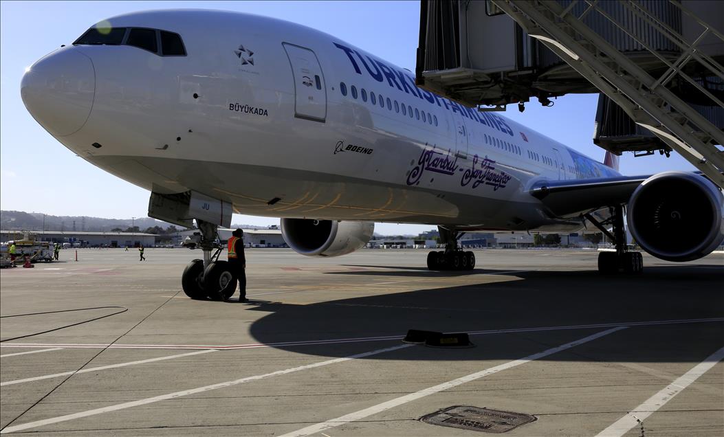 Türk Hava Yolları, İstanbul'dan ABD'nin California eyaleti San Francisco şehrine yerel zamana göre 13 Nisan saat 17'de ilk seferini gerçekleştirdi. ilk seferi yapan "Büyükada" adlı uçağın üzerinde, bu uçuşa özel yazı ve motif yer aldı. (Tayfun Coşkun - Anadolu Ajansı)Tayfun Coşkun