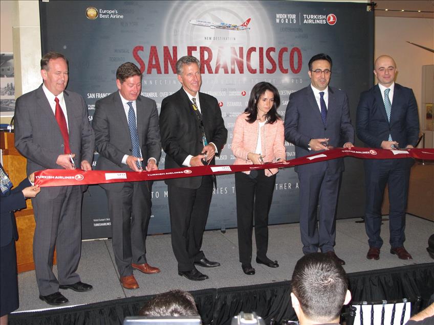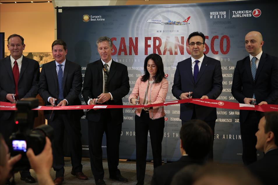 İstanbul – San Francisco arası direkt uçuşlarının gerçekleştirilmesi amacıyla (SFO) San Francisco Uluslararası Havaalanı’nda özel ayrılan bölümde tören düzenlendi. THY Yönetim Kurulu Başkanı İlker Aycı, Los Angeles Başkonsolosu Raife Gülru Gezer, San Francisco Havaalanı Direktörü John L. Martin, San Francisco belediye başkan vekili Mark Chandler ve San Francisco Turizm Bakanlığı Temsilcisi Joe D'Alessandra birlikte açılış kurdelasını kestiler. (Tayfun Coşkun - Anadolu Ajansı)Tayfun Coşkun