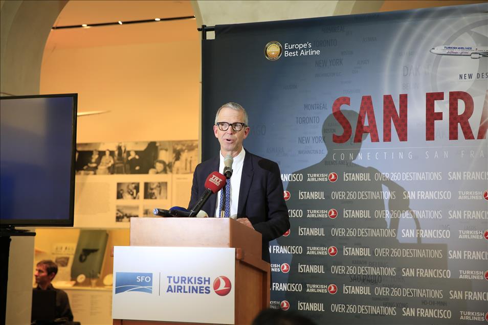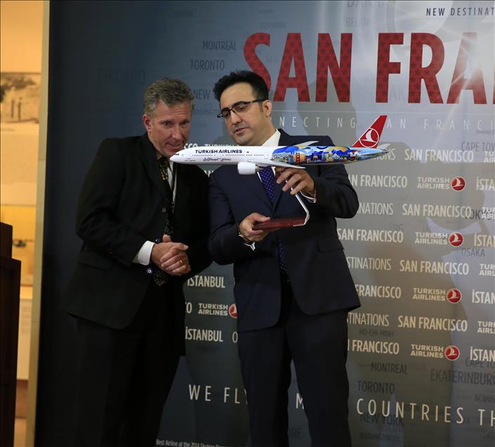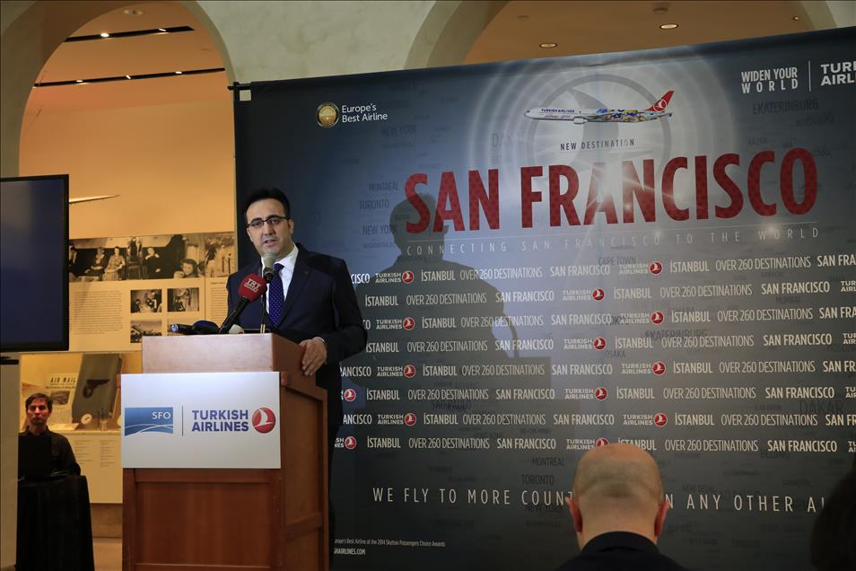 İstanbul – San Francisco arası direkt uçuşlarının gerçekleştirilmesi amacıyla (SFO) San Francisco Uluslararası Havaalanı’nda özel ayrılan bölümde tören düzenlendi. THY Yönetim Kurulu Başkanı İlker Aycı başkanlığında ve ilk sefer dolayısıyla düzenlenen törene Türkiye’nin Los Angeles Başkonsolosu Raife Gülru Gezer, San Francisco Havaalanı Direktörü John L. Martin, San Francisco belediye başkan vekili Mark Chandler, San Francisco Turizm Bakanlığı Temsilcisi Joe D'Alessandra ve birçok davetli katıldı. (Tayfun Coşkun - Anadolu Ajansı)Tayfun Coşkun