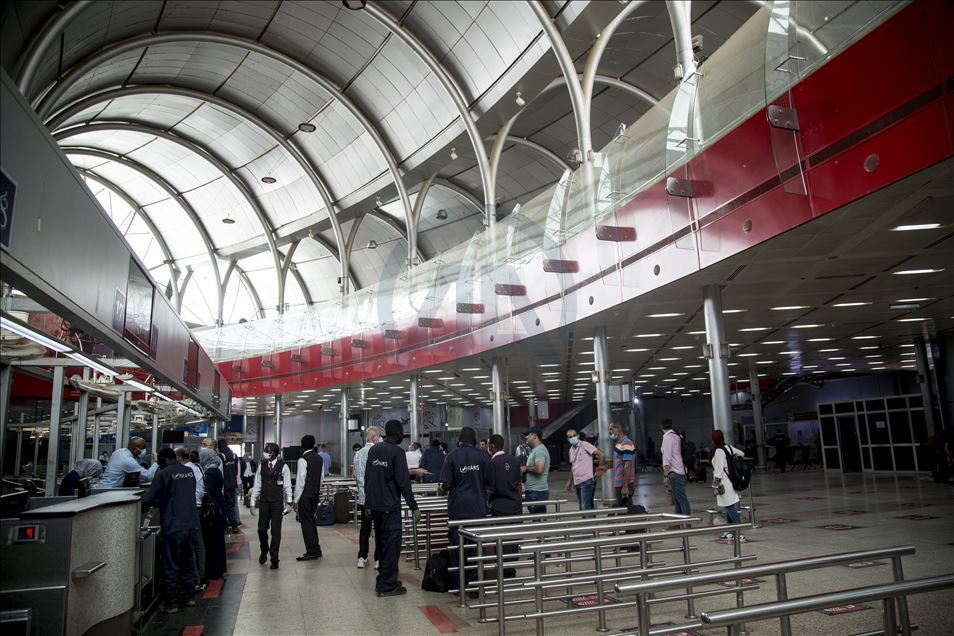 Yeni tip koronavirüs (Kovid-19) önlemleri kapsamında uçuşların durdurulması nedeniyle yurda dönemeyen Sudan'daki Türk vatandaşları için 4. tahliye uçuşu gerçekleştirildi. Türkiye’ye dönmek isteyen 286 Türk vatandaşı, Hartum'dan Türk Hava Yollarına (THY) ait özel seferle yurda getiriliyor. Hartum Uluslararası Havalimanı girişinde ateş kontrolü yapılan vatandaşlar, TSİ 17.30’da İstanbul’a hareket etti. ( Mahmoud Hjaj - Anadolu Ajansı )Mahmoud Hjaj