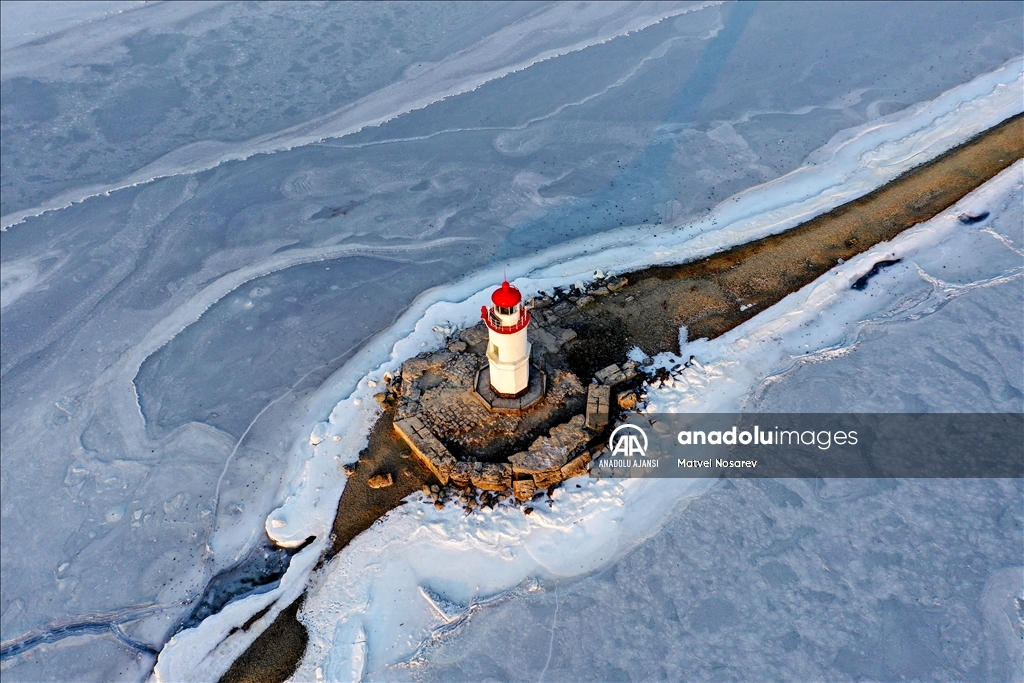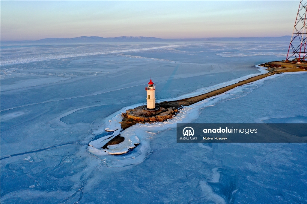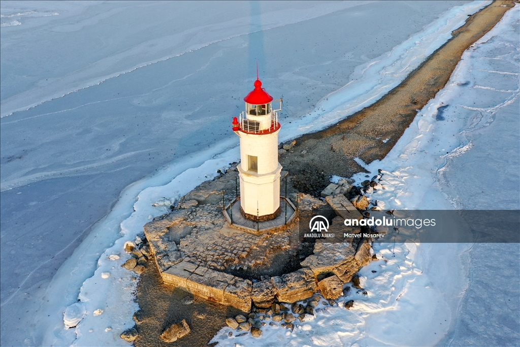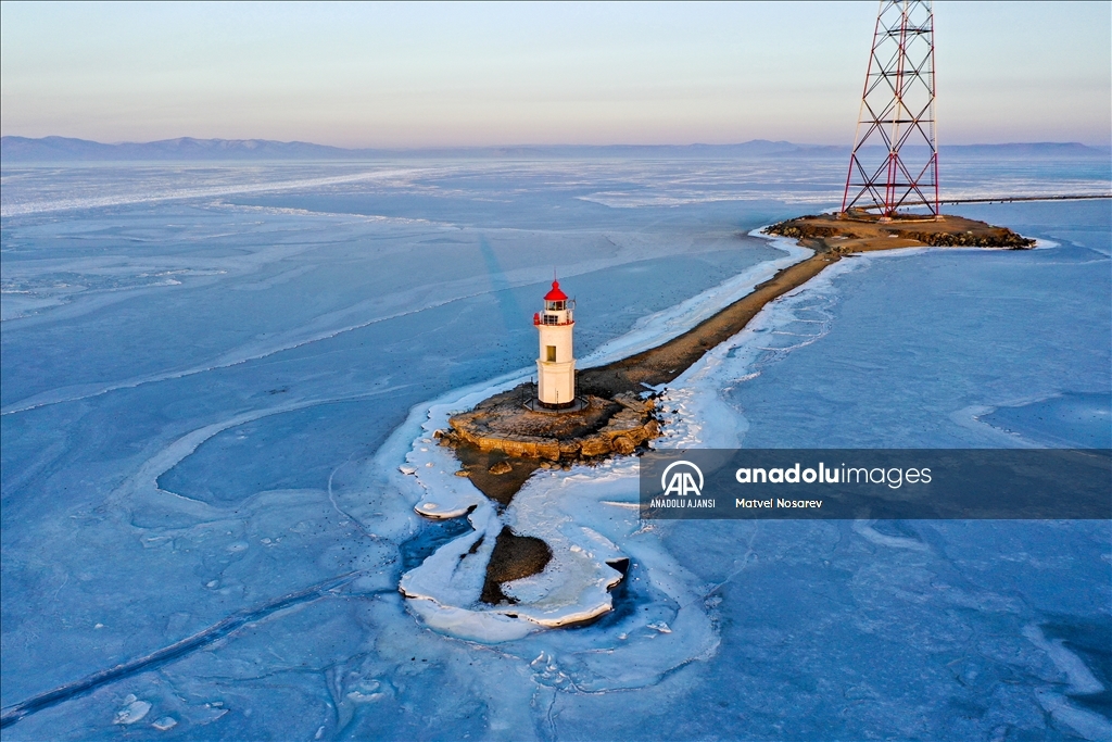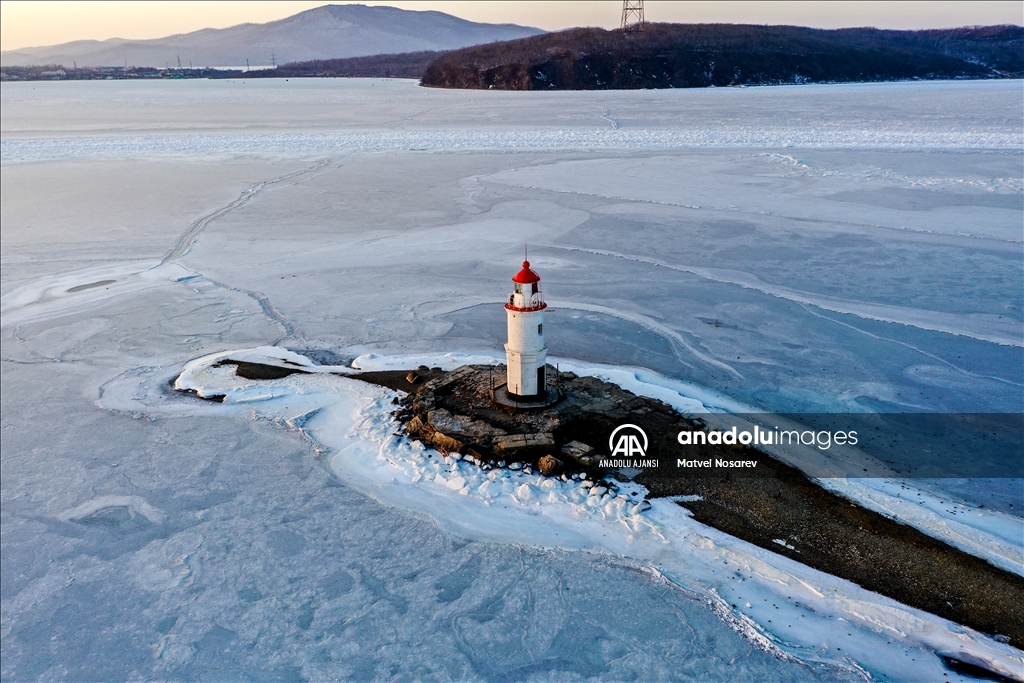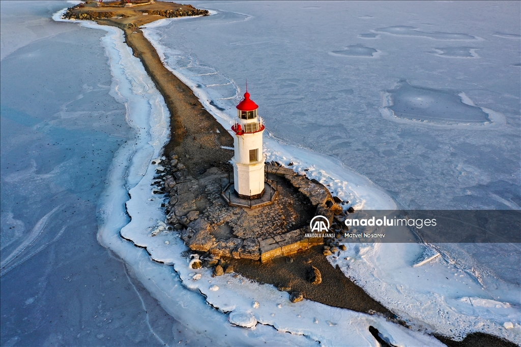 Rusya’nın Vladivostok kentindeki Tokarevsky Deniz Feneri, kış mevsiminde eksi 50 dereceye kadar etkili olan elverişsiz hava koşullarının ardından buz kütleleri arasında kaldı.