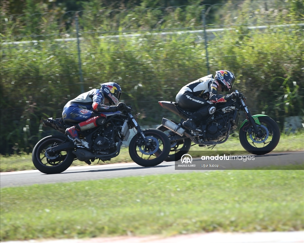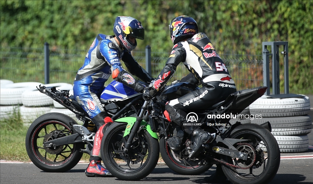 Milli motosikletçi Toprak Razgatlıoğlu (mavi giysi), Dünya Superbike Şampiyonası'nın İspanya ayağını en iyi pozisyonda bitirmeyi hedefliyor. Organizasyonun son şampiyonu Toprak Razgatlıoğlu, 23-25 Eylül'de İspanya'da yapılacak yarışın hazırlıklarını Kenan Sofuoğlu ile Sakarya'nın Akyazı ilçesindeki Kenan Sofuoğlu Pisti'nde sürdürüyor. ( Uğur Subaşı - Anadolu Ajansı )Uğur Subaşı