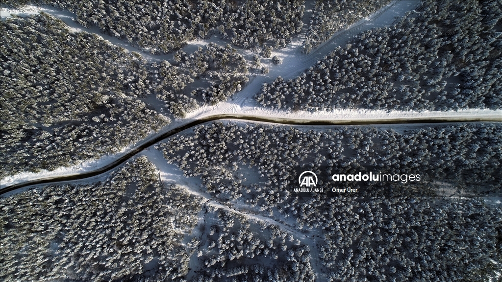 Trabzon'da karlar altında kalan yaylalar havadan görüntülendi
