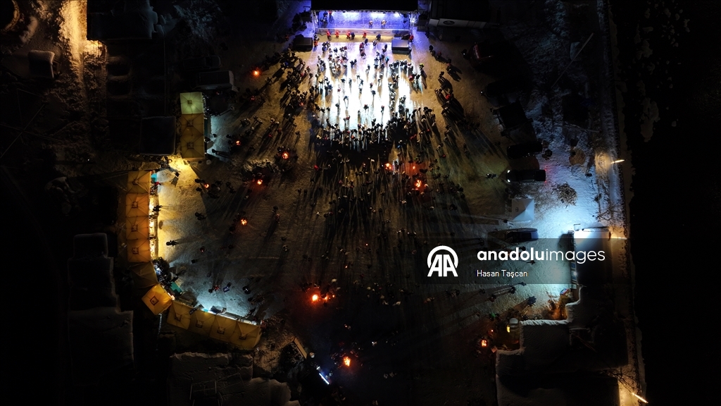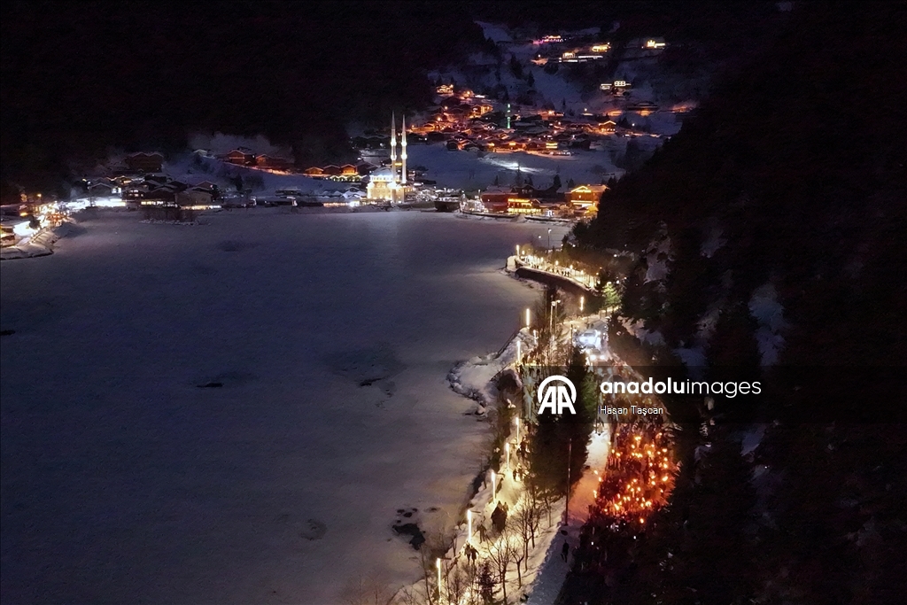 Valilik koordinesinde Büyükşehir Belediyesi ile Trabzon Ticaret ve Sanayi Odasının organize ettiği "Uzungöl Kış Festivali"nde kortej yürüyüşü düzenlendi. Katılımcılar, konser alanına kadar meşalelerle yürüdü. (Hatice Diler - Anadolu Ajansı)Hatice Diler