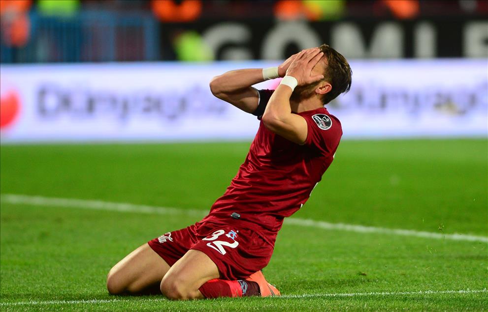 Spor Toto Süper Lig'de Trabzonspor ile Beşiktaş, 19. hafta erteleme maçında Hüseyin Avni Aker Stadı'nda karşılaştı. Trabzonsporlu futbolcu Yusuf Erdoğan'ın, kaçırdığı gol pozisyonun ardından yaşadığı üzüntü. ( Hakan Burak Altunöz - Anadolu Ajansı )Hakan Burak Altunöz
