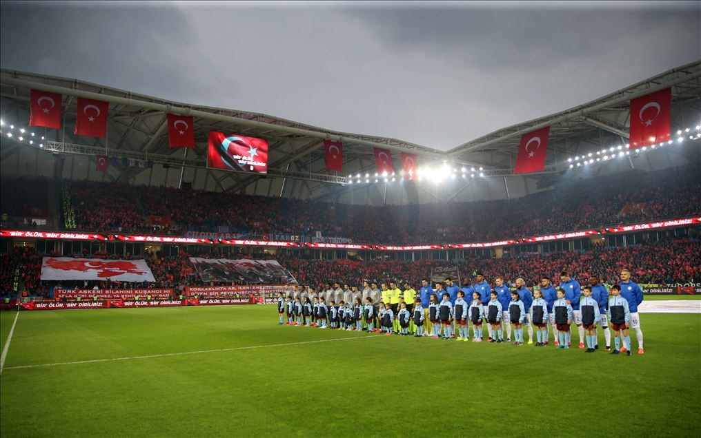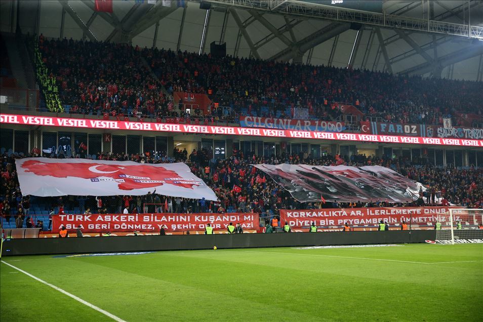 Süper Lig'in 24. haftasında Trabzonspor ile Çaykur Rizespor karşılaştı. Suriye'nin İdlib kentinde, 33 askerin şehit edildiği Esed rejimi unsurlarının saldırısı nedeniyle taraftarlar Türk bayraklarıyla karşılaşmayı izledi. Trabzonsporlu taraftarlar pankartlar açtı. ( Hakan Burak Altunöz - Anadolu Ajansı )Hakan Burak Altunöz