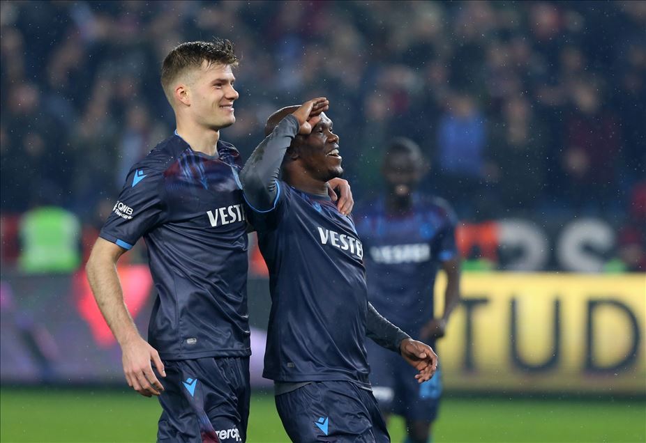Süper Lig'in 24. haftasında Trabzonspor ile Çaykur Rizespor karşılaştı. Trabzonsporlu futbolcu Nwakaeme (sağda) ile Sörloth gol sevinci yaşadı. Nwakaeme, asker selamı verdi. ( Hakan Burak Altunöz - Anadolu Ajansı )Hakan Burak Altunöz