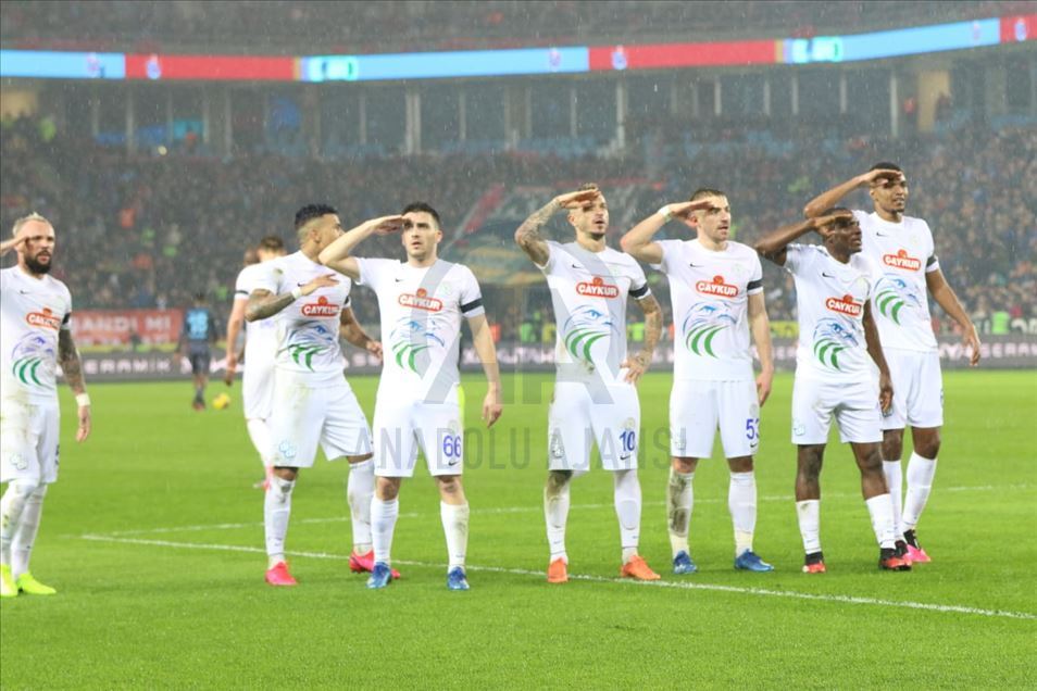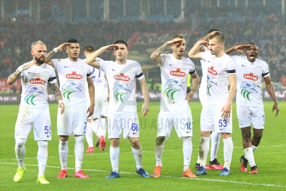 Süper Lig'in 24. haftasında Trabzonspor ile Çaykur Rizespor karşı karşıya geldi. Çaykur Rizesporlu futbolcular Dario Melnjak'ın (53) attığı gol sonrası asker selamı verdi. ( Çaykur Rizespor Kulübü - Anadolu Ajansı )Çaykur Rizespor Kulübü