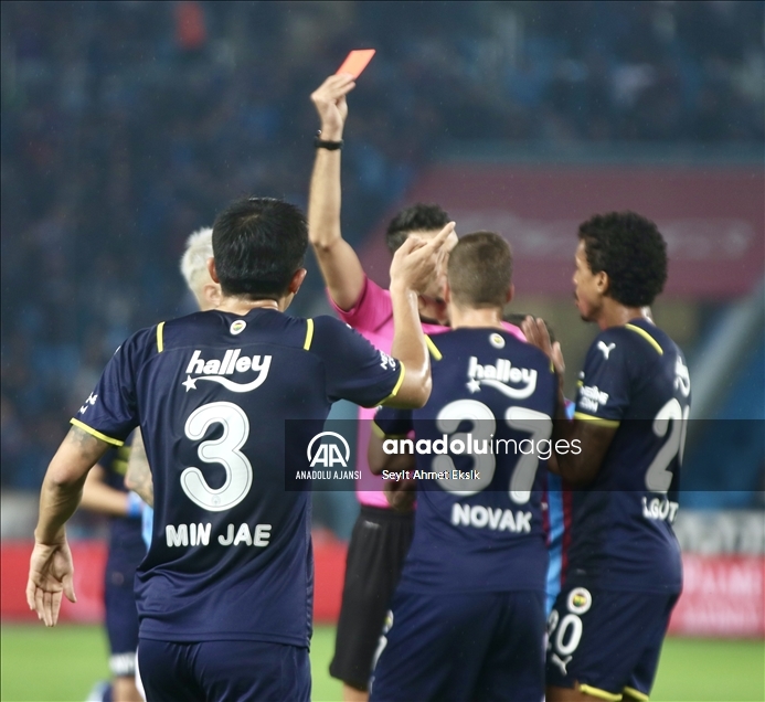 Süper Lig’in 9’ncu haftasında Trabzonspor, Fenerbahçe ile karşılaştı. Bir pozisyonda Fenerbahçeli Min Jae Kim, kırmızı kart gördü. ( Seyit Ahmet Eksik - Anadolu Ajansı )Seyit Ahmet Eksik